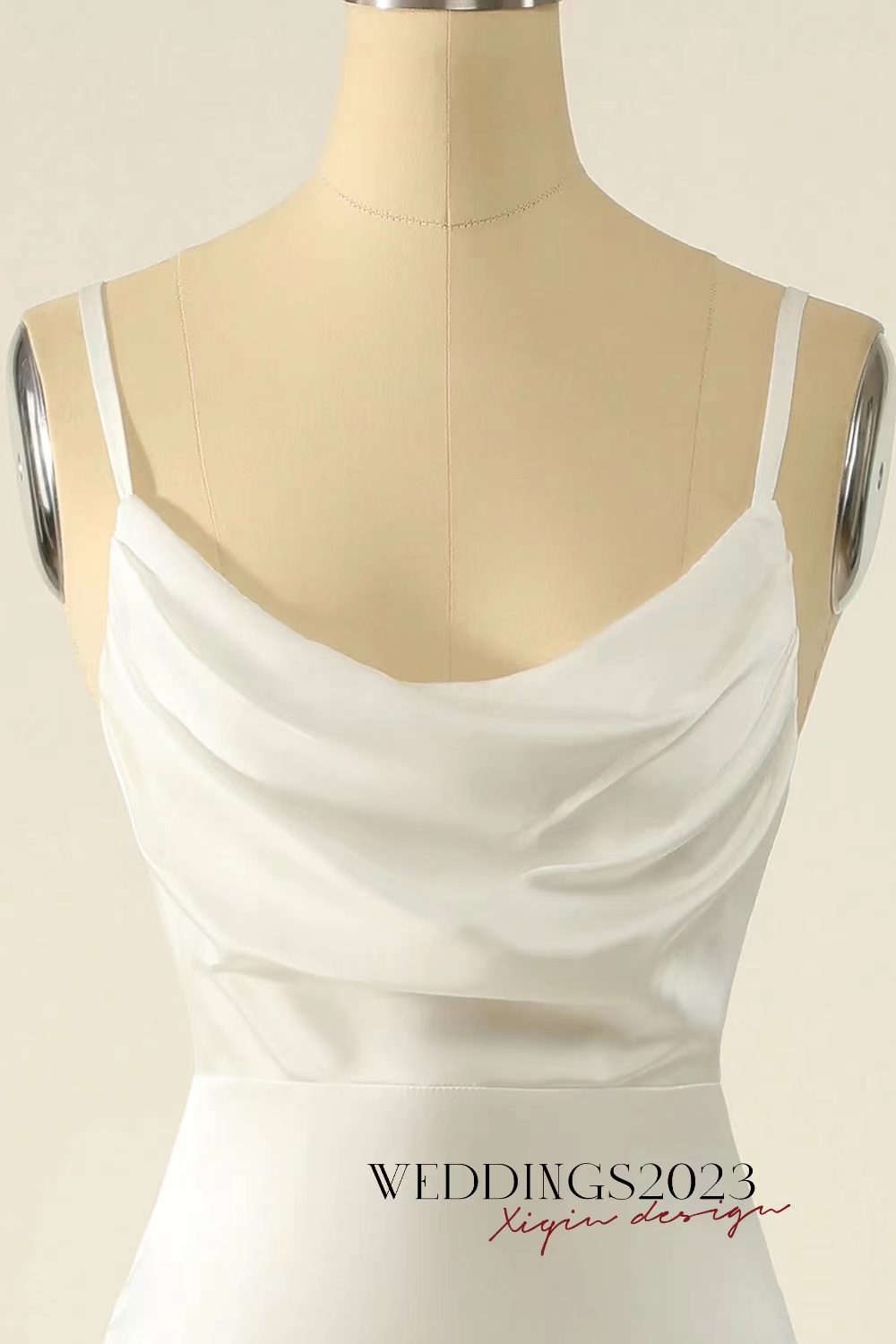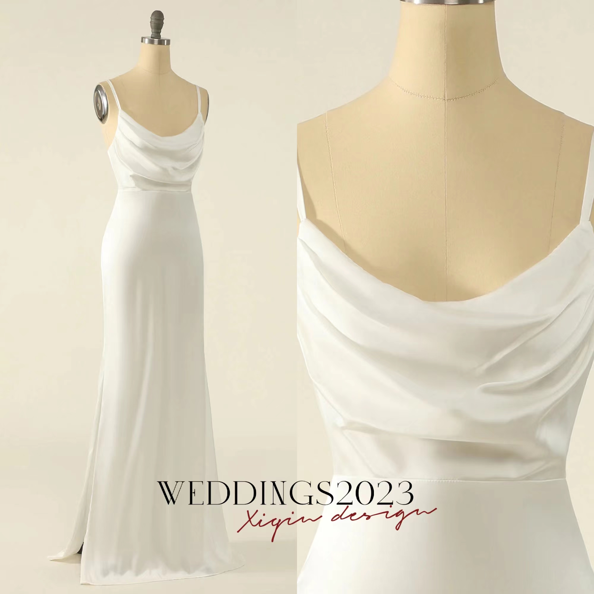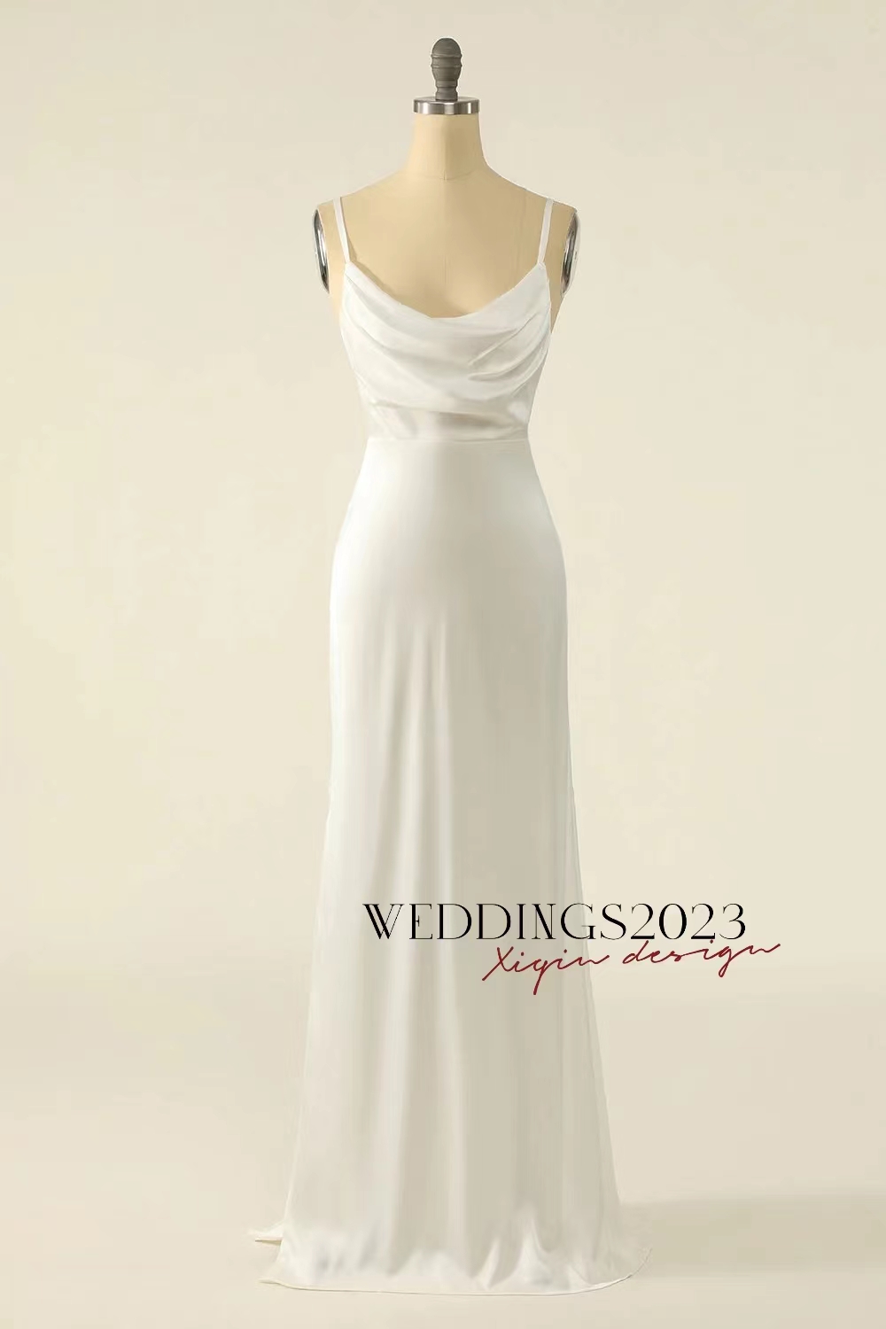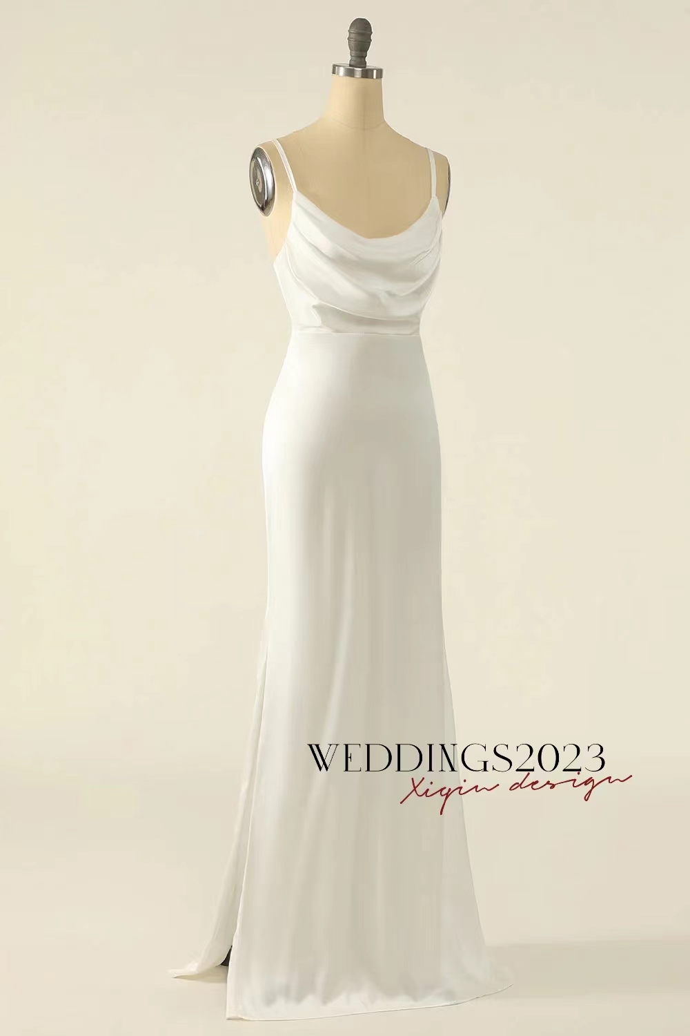 Simple Ivory Wedding Dress Sheath Cowl Neck Long Satin Simple Wedding Dresses W-56056