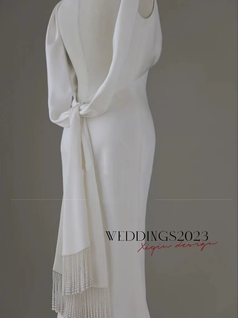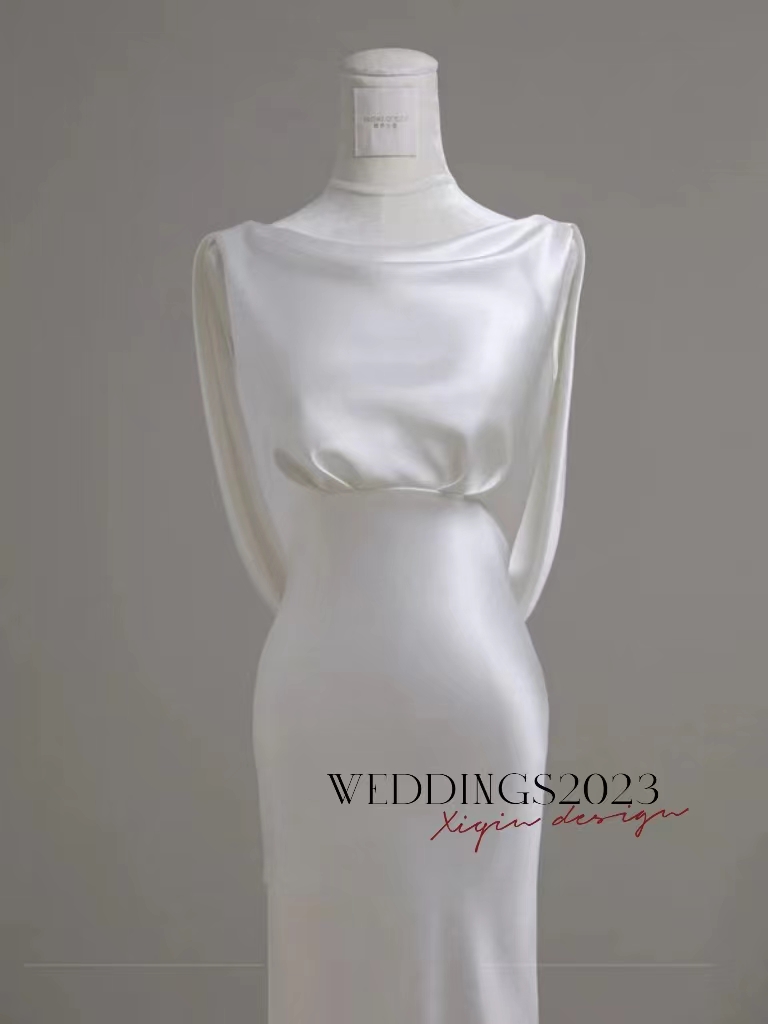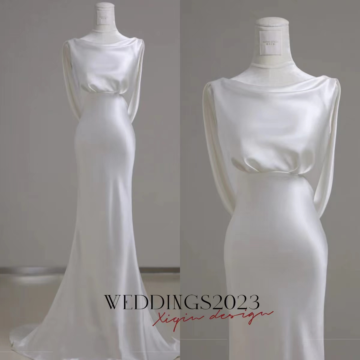 Vintage Sheath Silk Wedding Dress with Long Sleeves Ball Gown W-5664