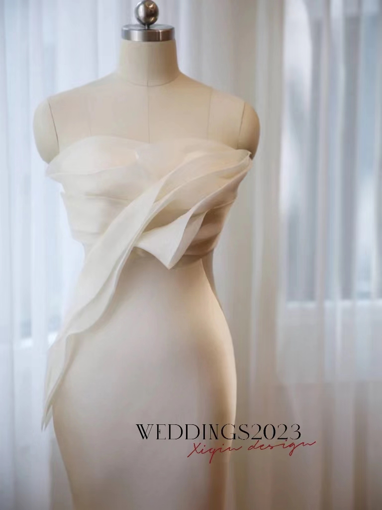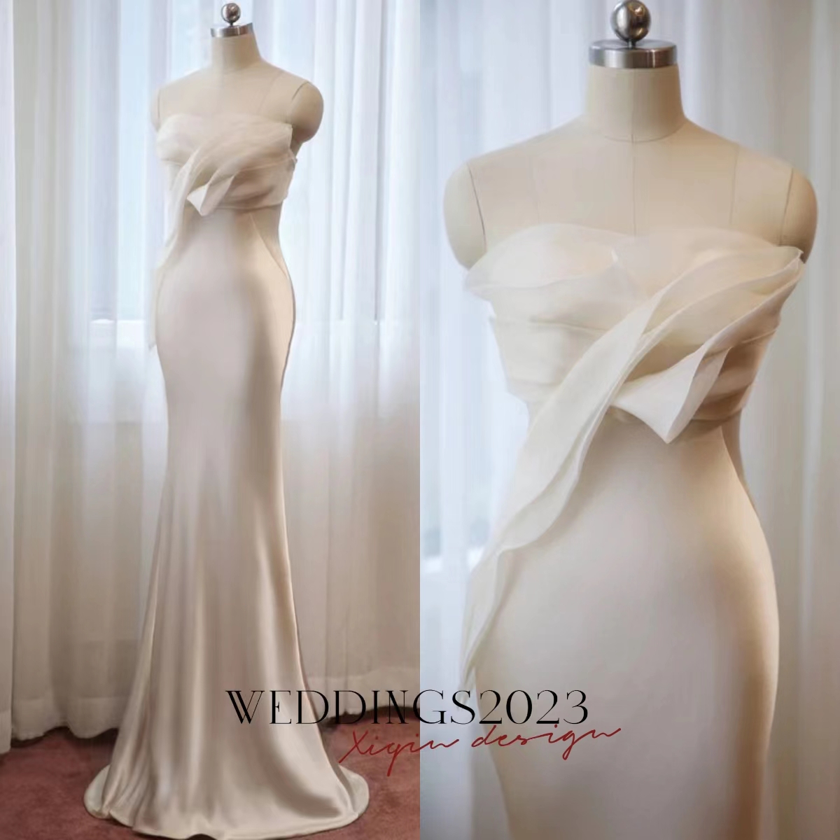 Flowy Simple Sheath Silk Strapless Mermaid Wedding Dress Ball Gown W-56065