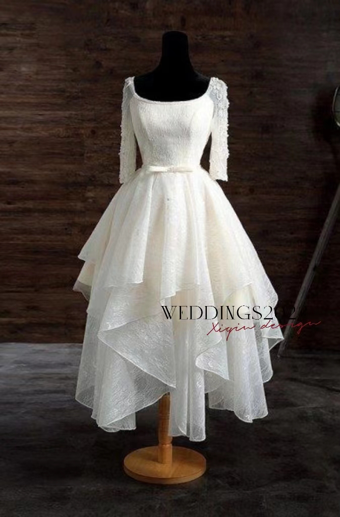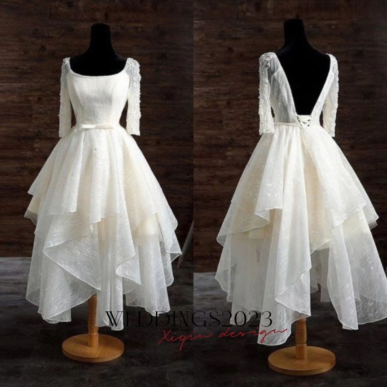 Vintage A-line Short Wedding Dress Scoop Neck Lace With Appliques Lace Ball Gown W-56080