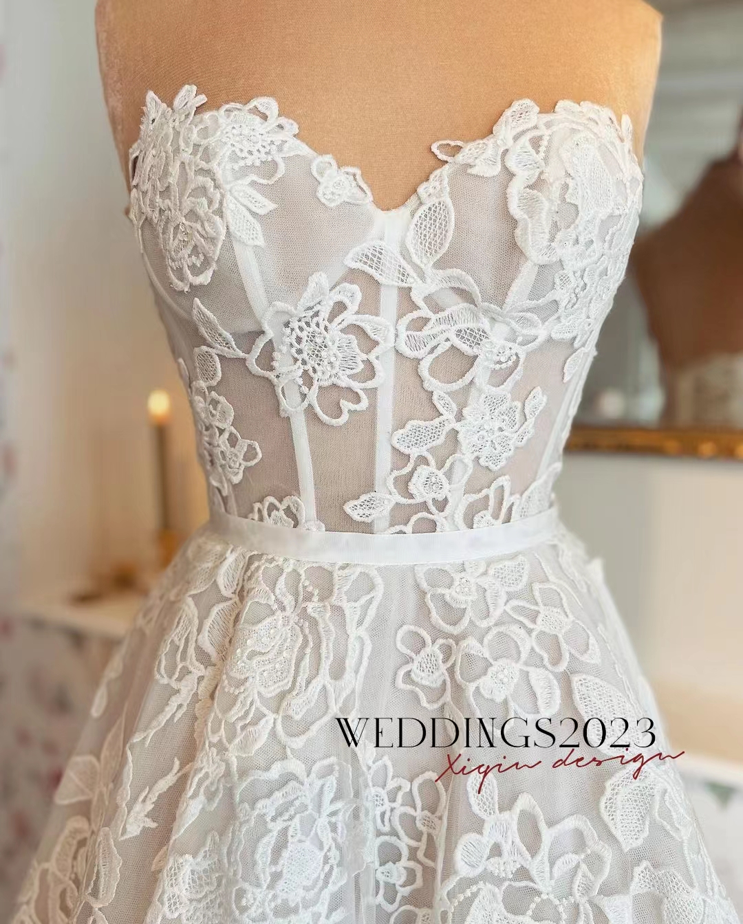 I am able to customize Your Wedding Dress and make it more Personal for You. Please remark your Customization Request in Your Order Note during check out and I will contact you to confirm this as soon as possible. There is an extra fee for customization.