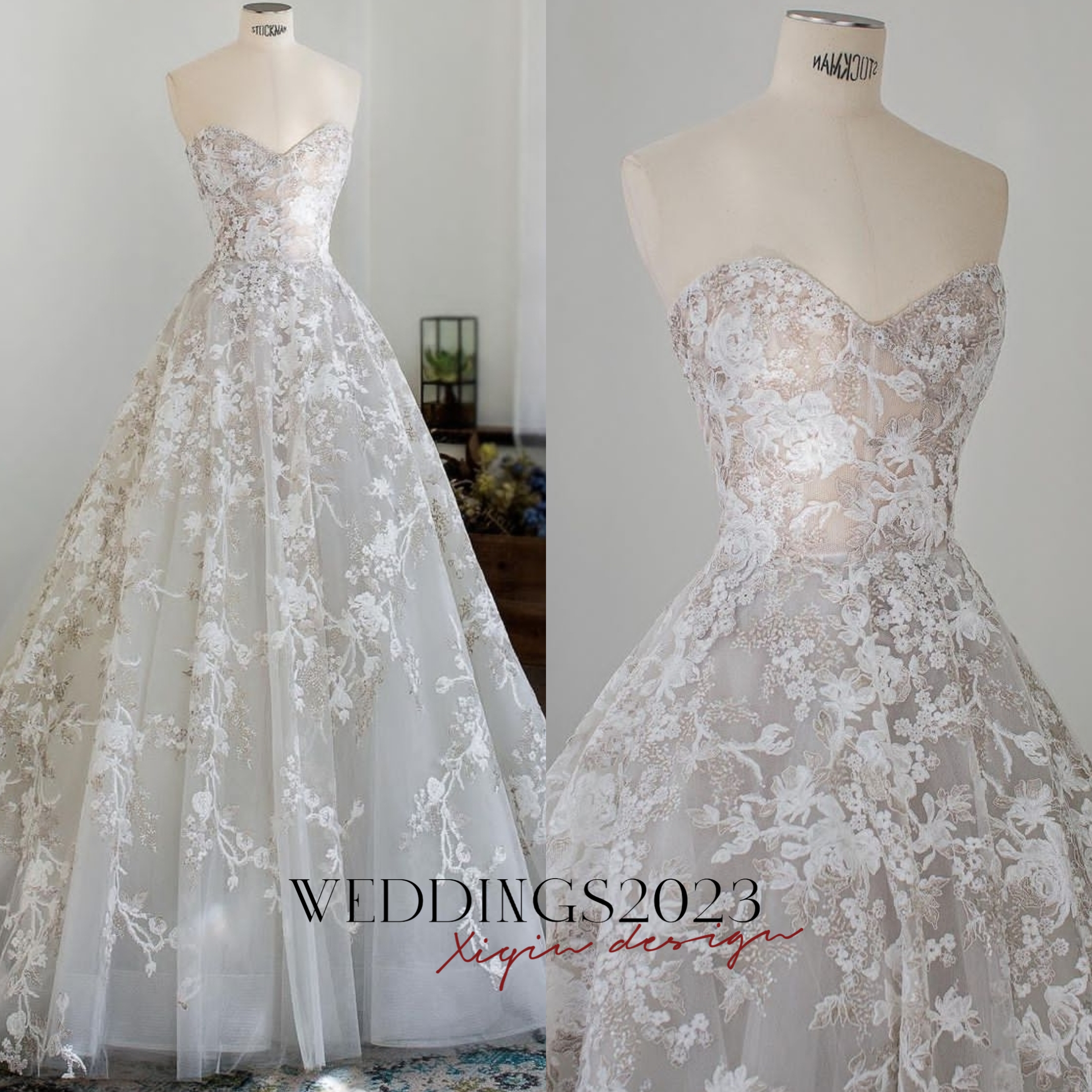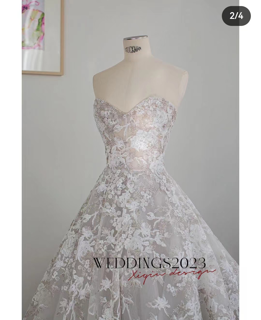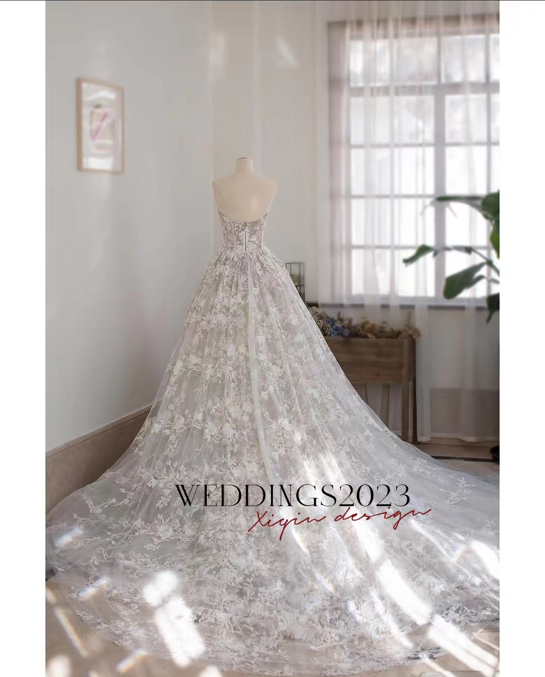 Elegant Strapless Wedding Dress Sparkly Bridal Gown Applique Bridal Dress with Bead Sequin Wedding Gown A Line Beach Gown W-56092