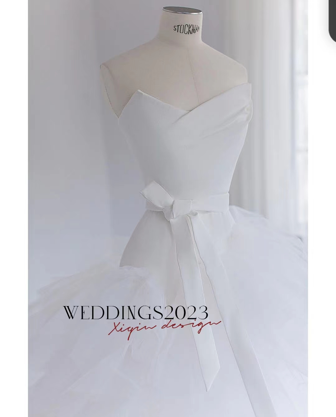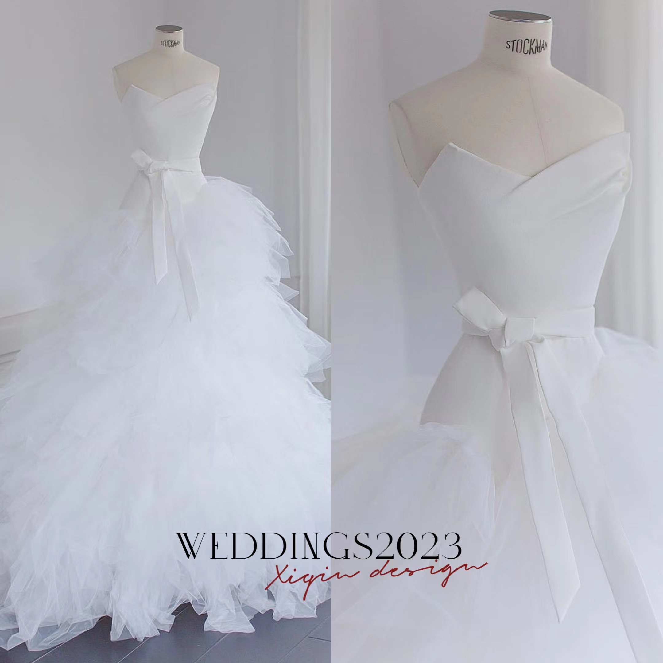 Charming Satin Tulle Wedding Gown Princess Long Trailing Wedding Dress Gown W-56094