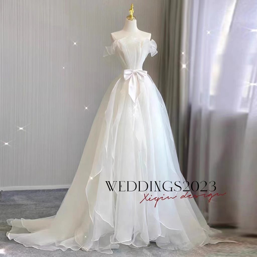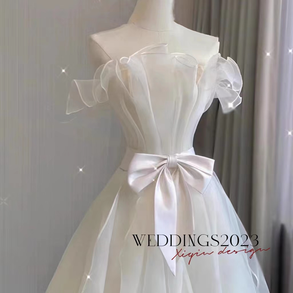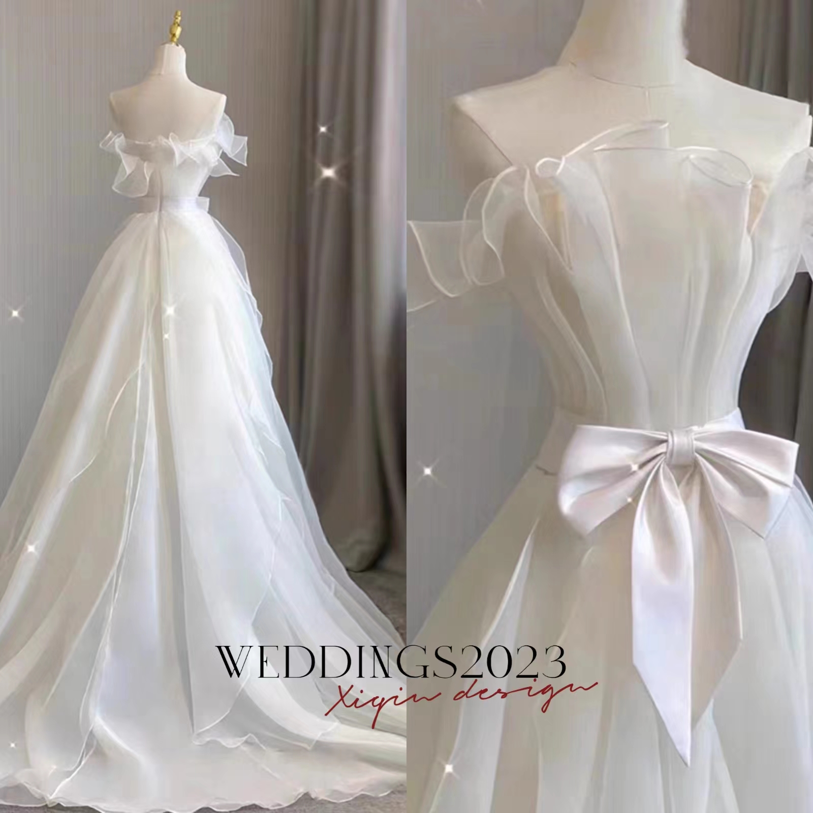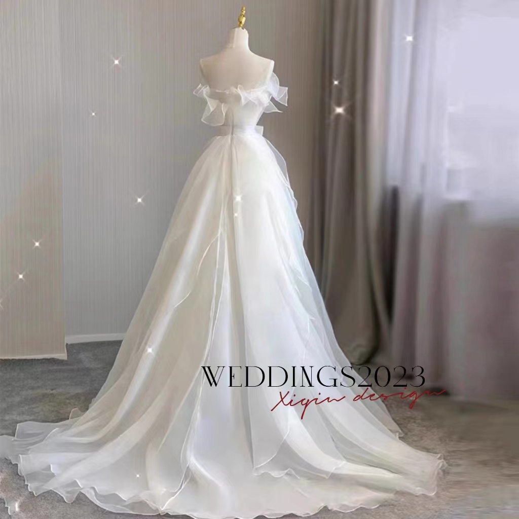 Newest Design Wedding Dress Floor Length Strapless Ruffled Modern Organza and Tulle Bridal Gown W-51814