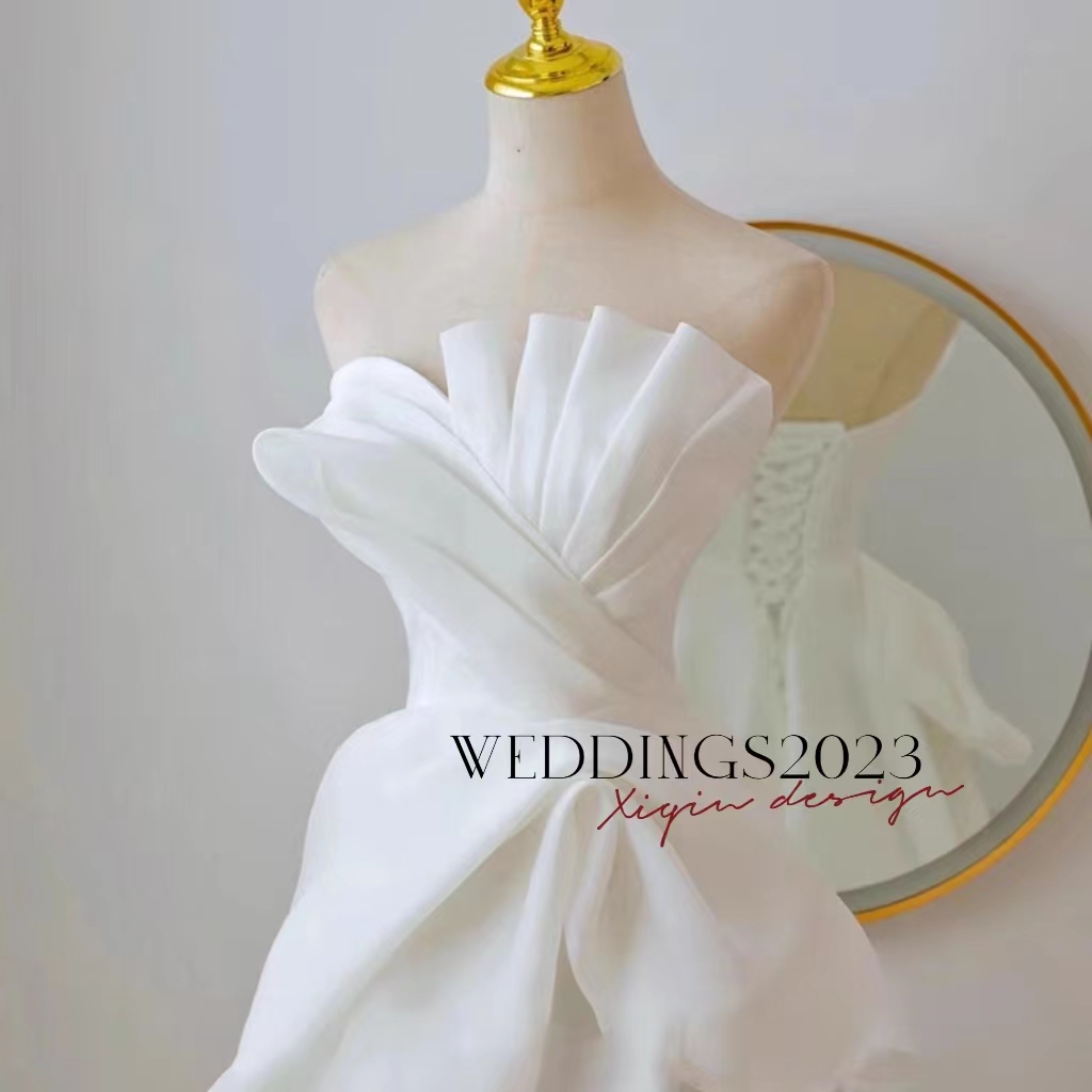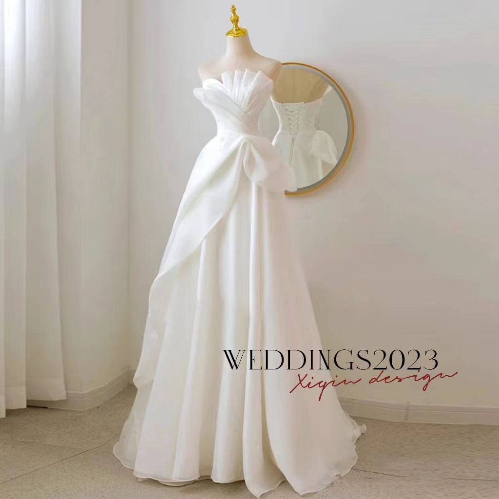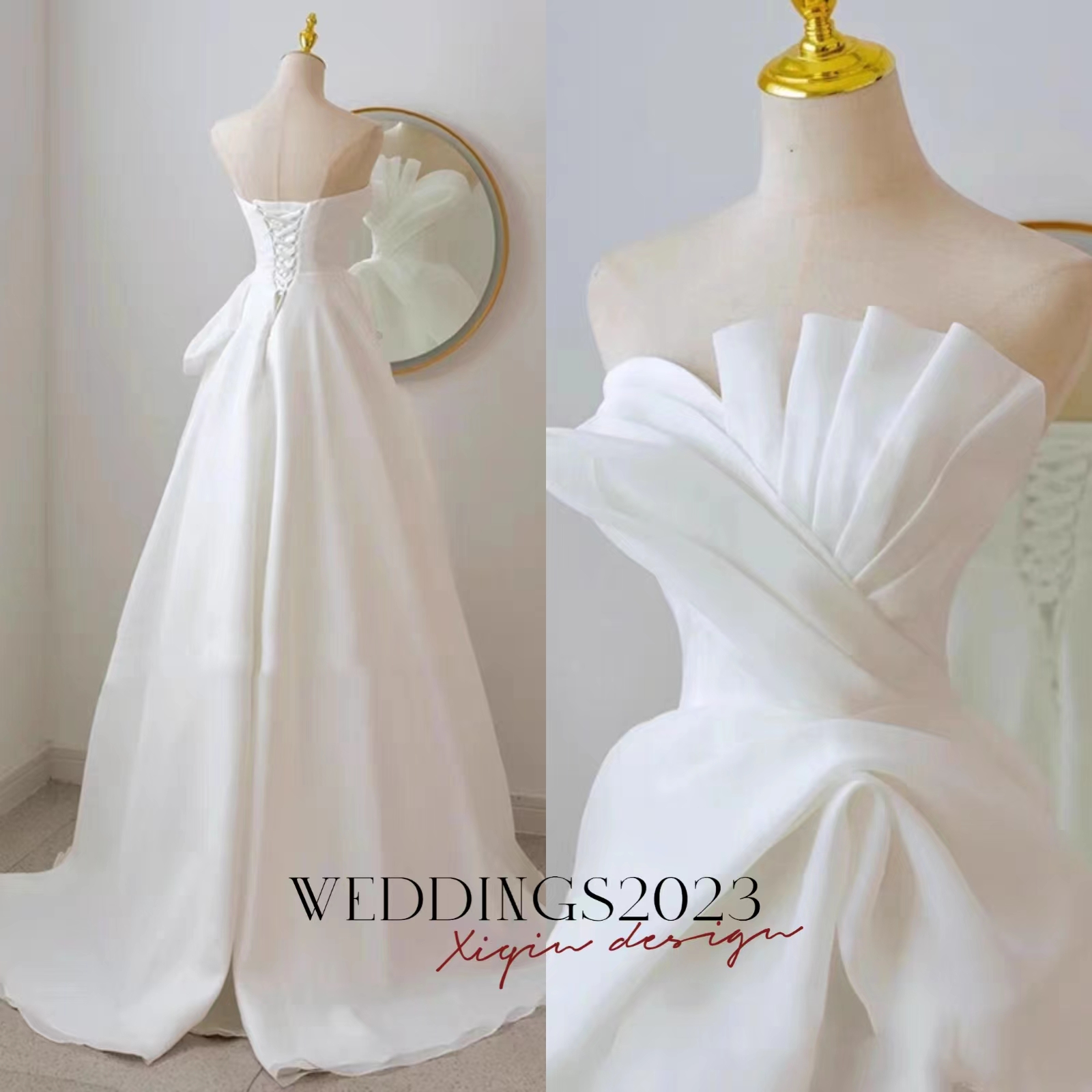 Luxury Organza Strapless Wedding Dress Long Prom Evening Guest Formal Party Women Dresses W-51815