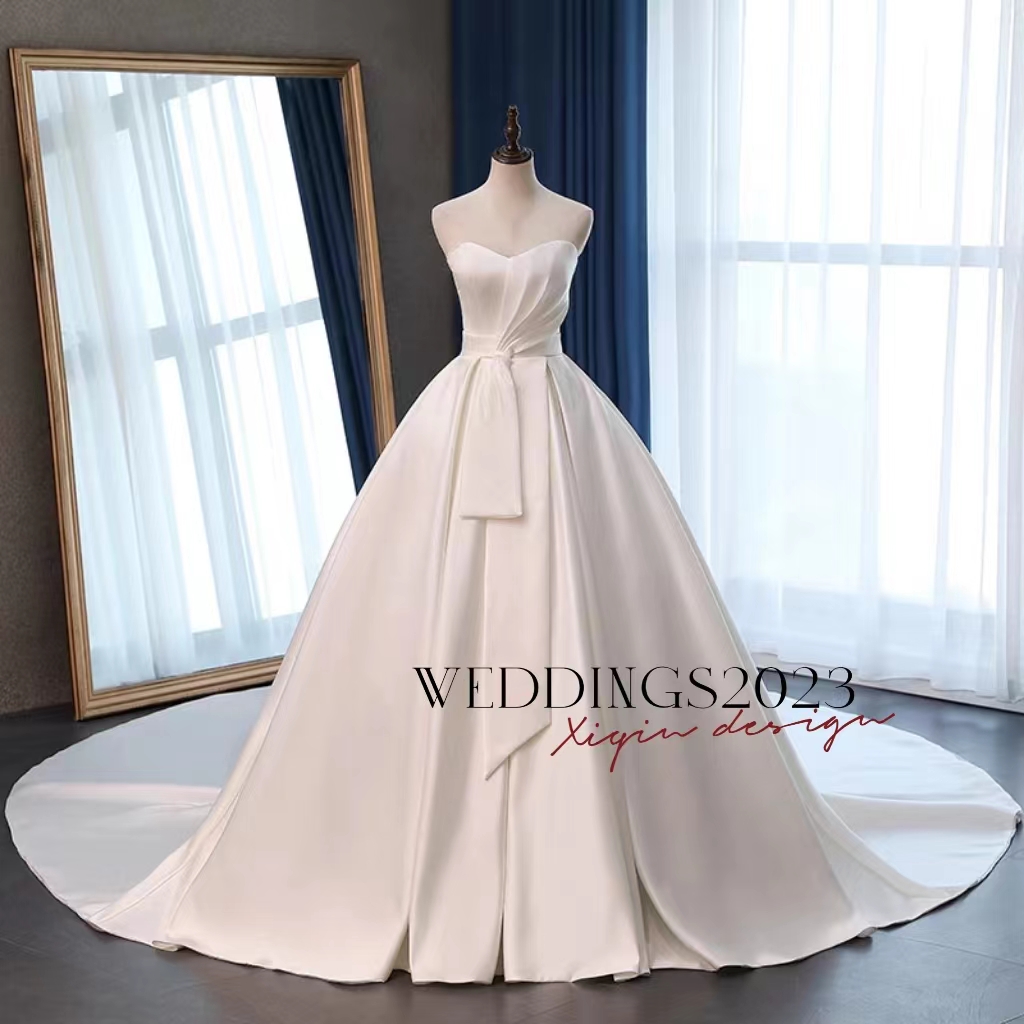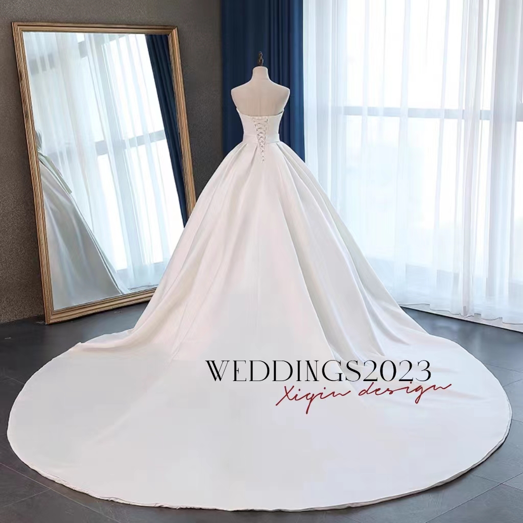 Elegant Satin Sweetheart Wedding Dress Corset Long Train Bridal Ball Gowns Customized W-51822