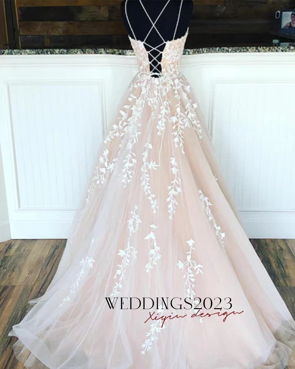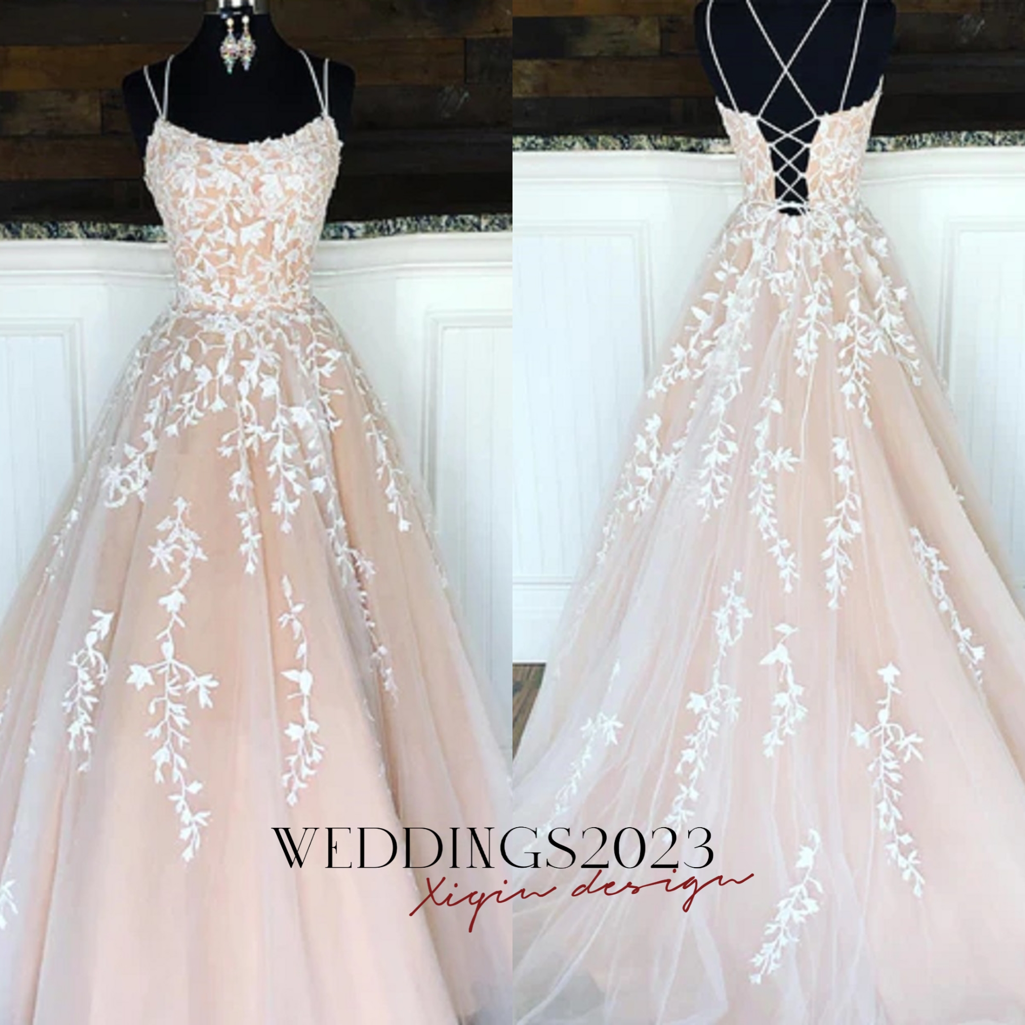 Charming Wedding Dresses Paghetti Strap Evening Dresses A-Line Long Prom Dress W-51824