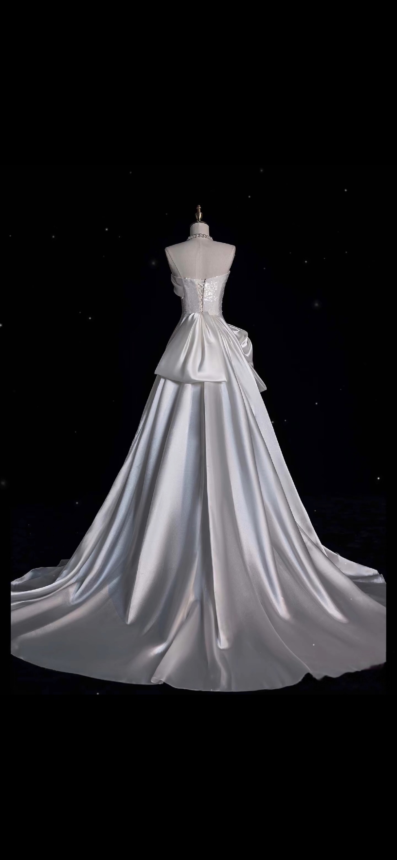 Sparkling Ivory Satin Prom Dress: Removable Sequin Train Prom Dresses