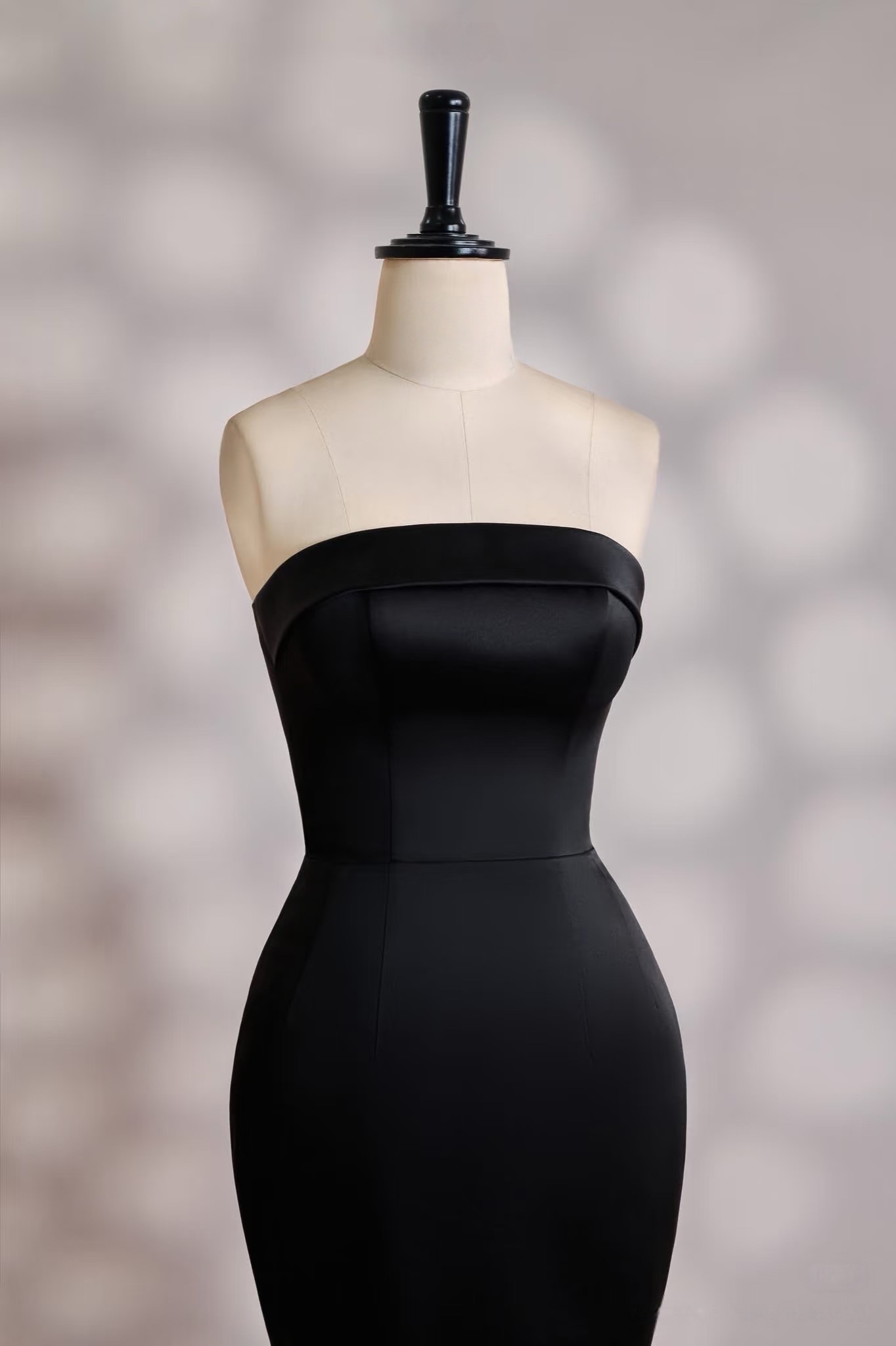Strapless Mermaid Satin Black Dress with Shawl - Elegant Evening Gown, Formal Wear For Prom & Weddings, Luxury Party Dress