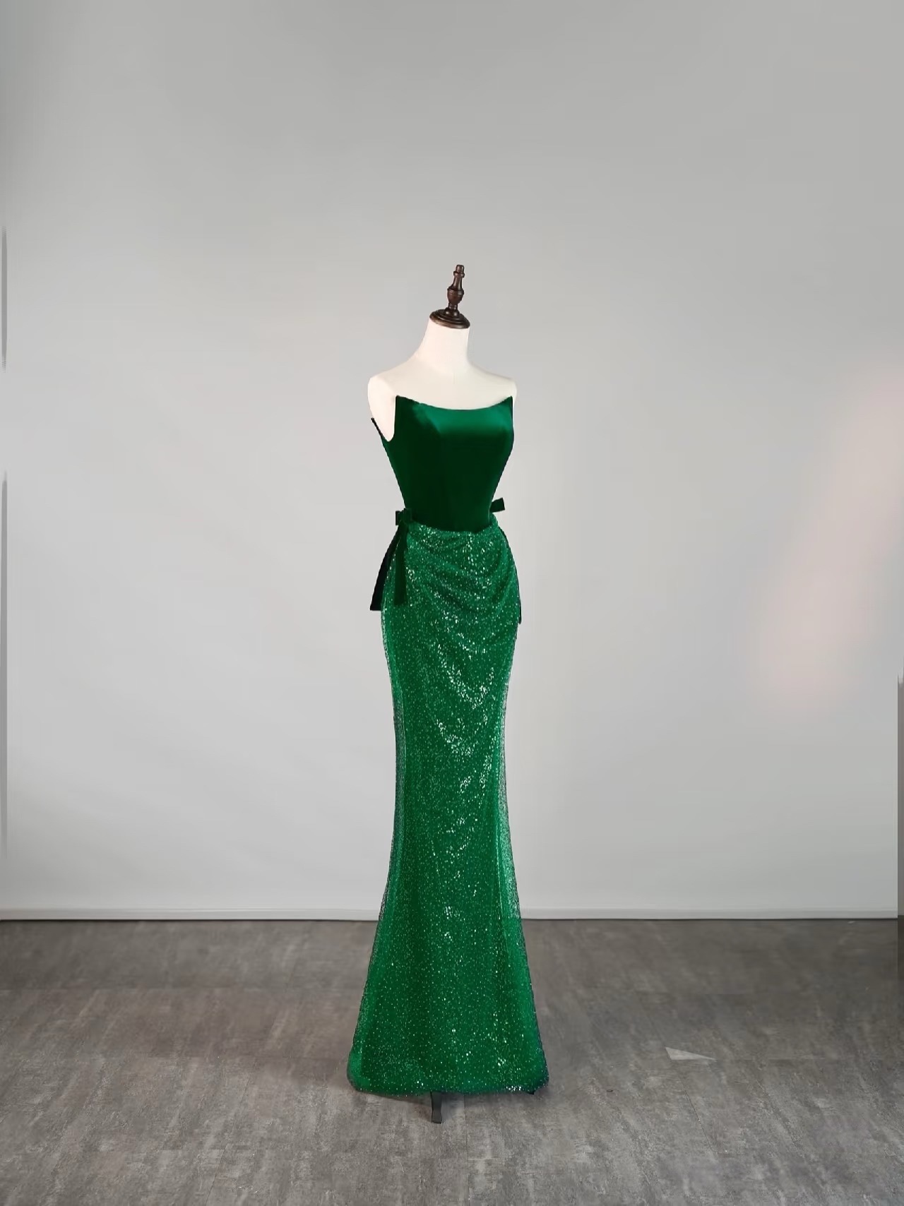 Elegant Green Strapless Beaded Lace Mermaid Lace Up Prom Dresses with Train