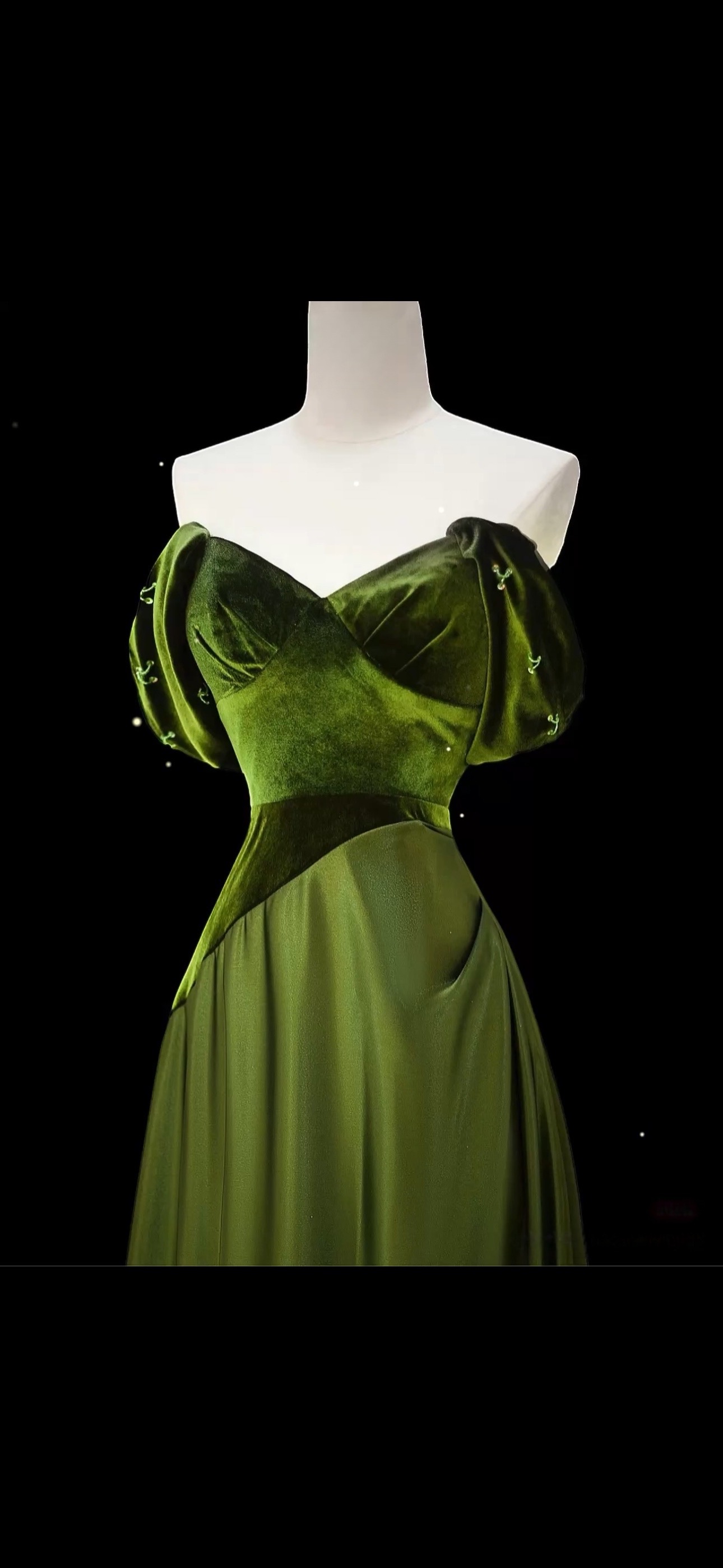 Green Satin Evening Gown, Off-Shoulder Custom Tailored Dress, Elegant Long Sleeve Formal Dress for Special Occasions