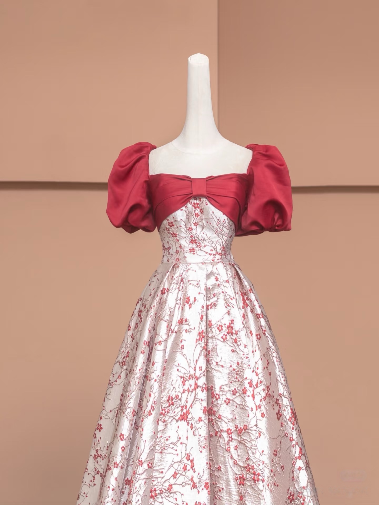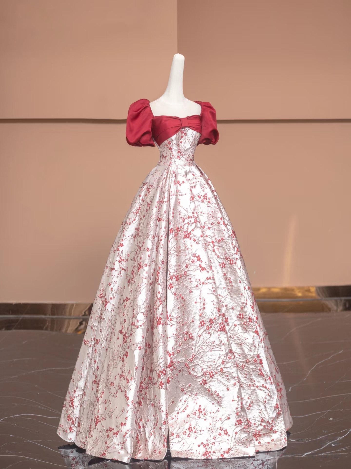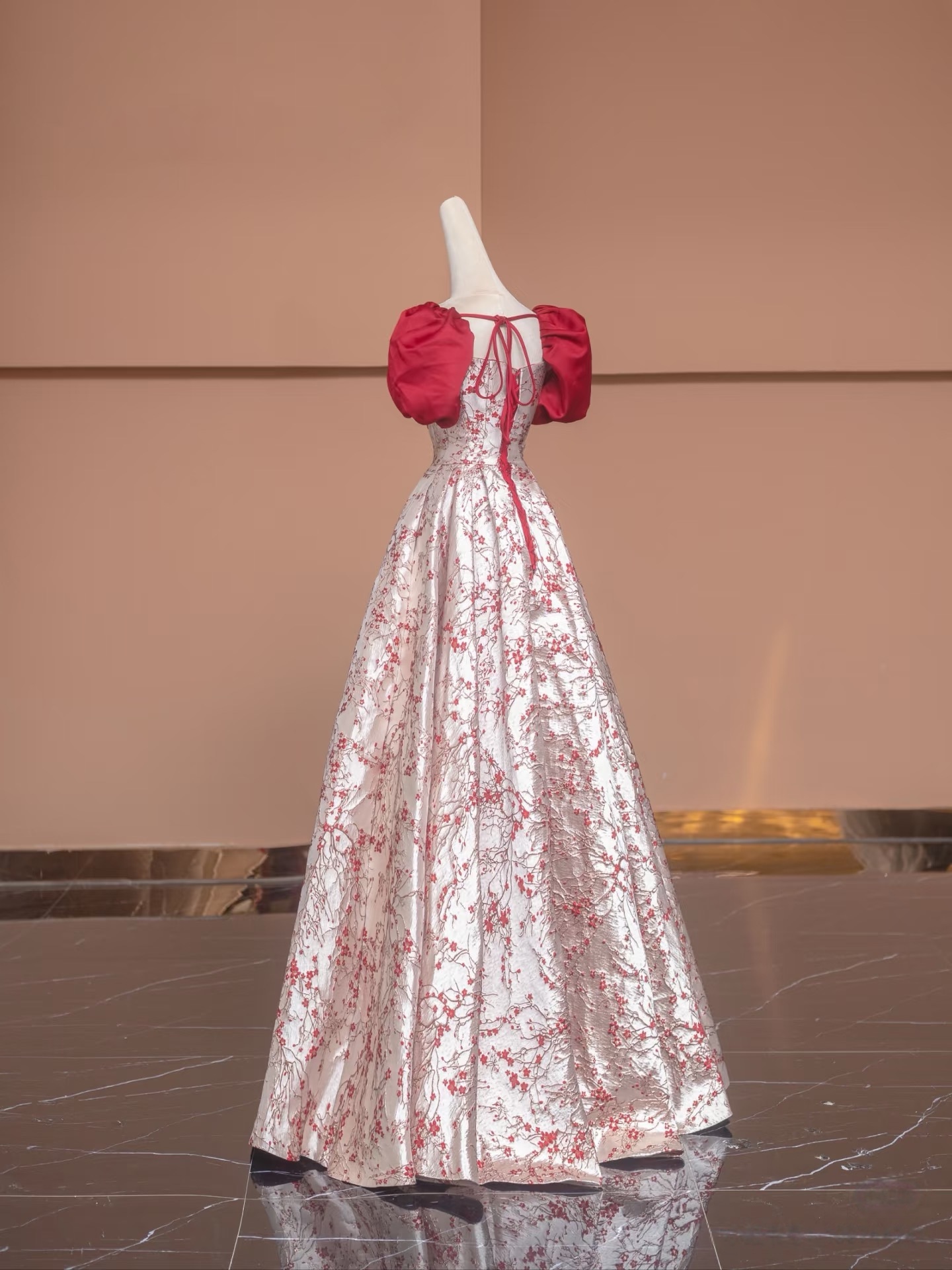 Elegant Princess Prom Gown,Puff Sleeve Prom Dress, Quare Collar Neck Senior Prom Dress,Lace up Bridal Dress