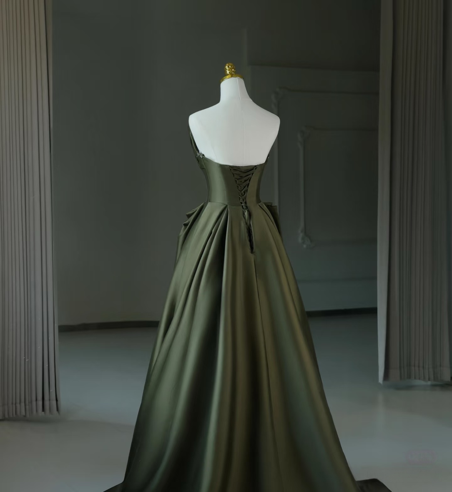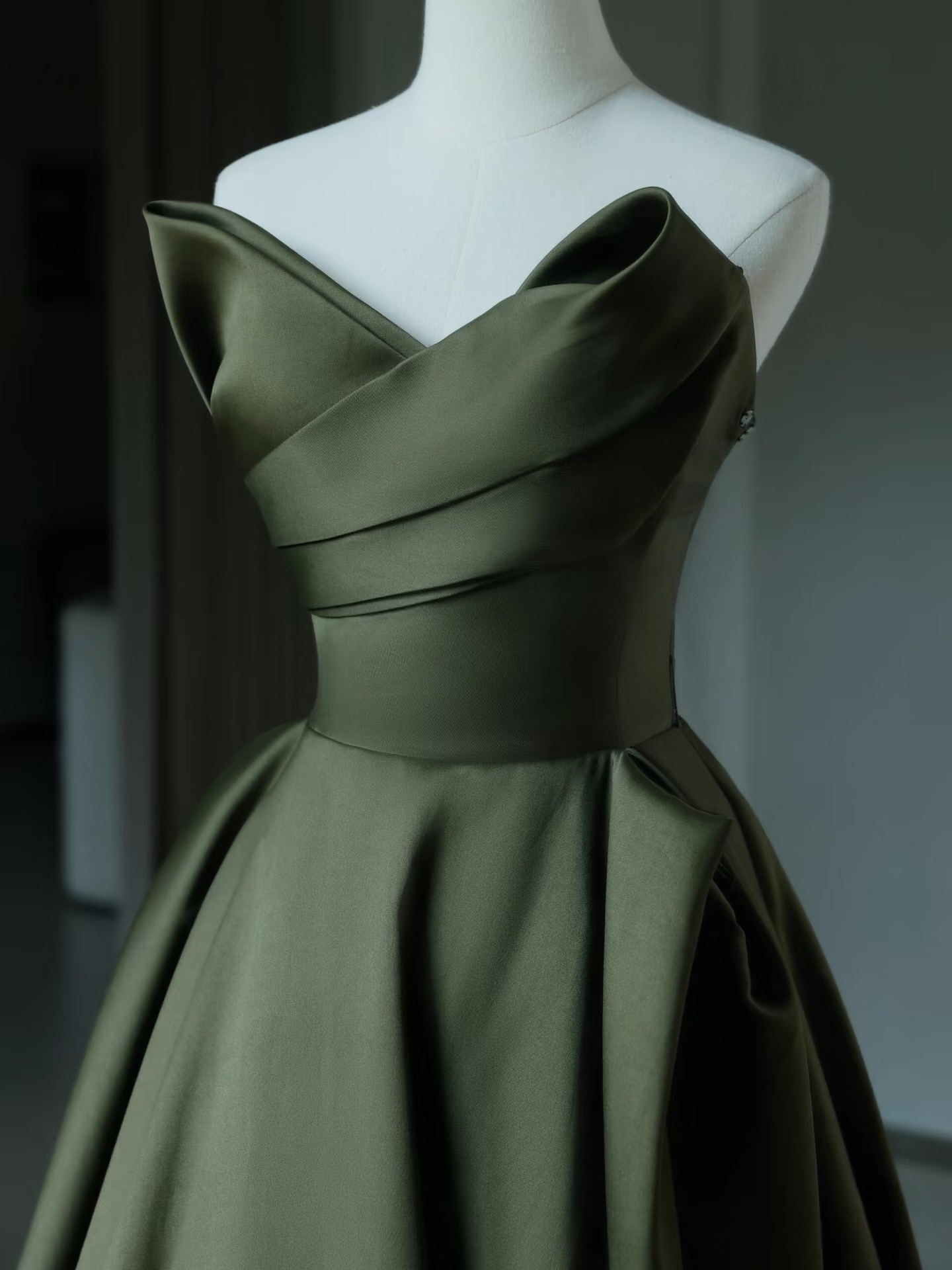 Dark Green Strapless Satin A-line Floor Length Lace up Back Prom Dress