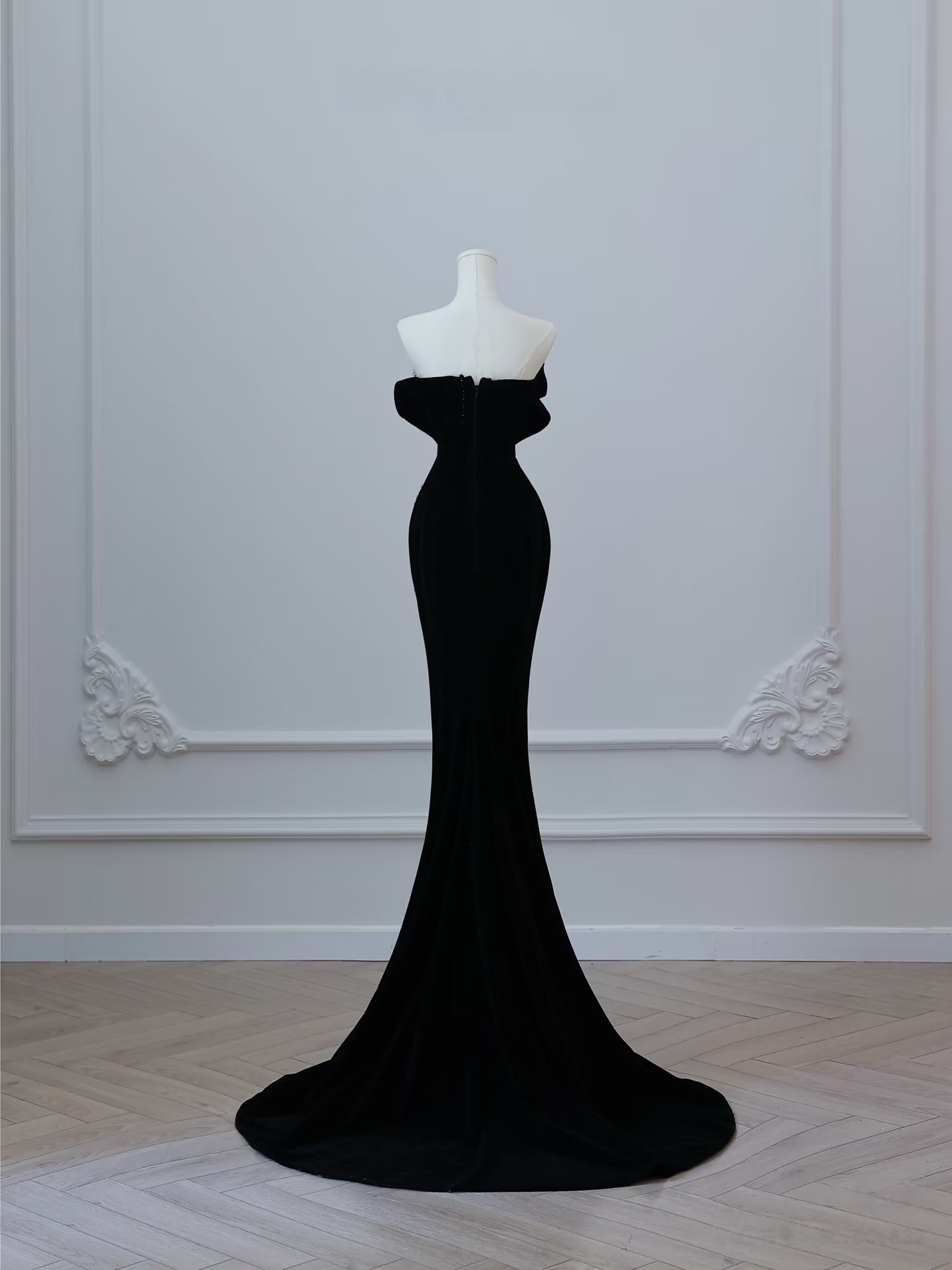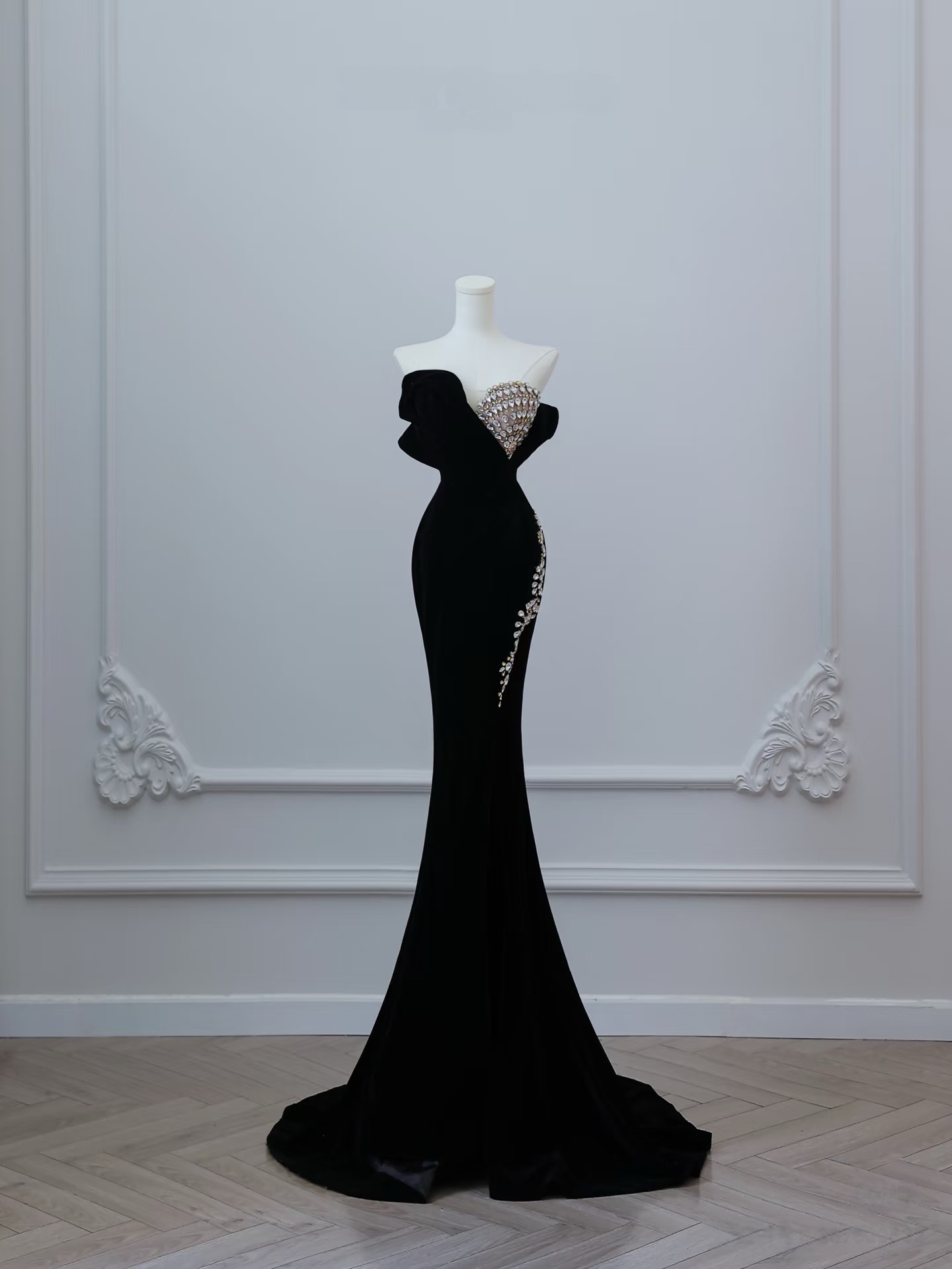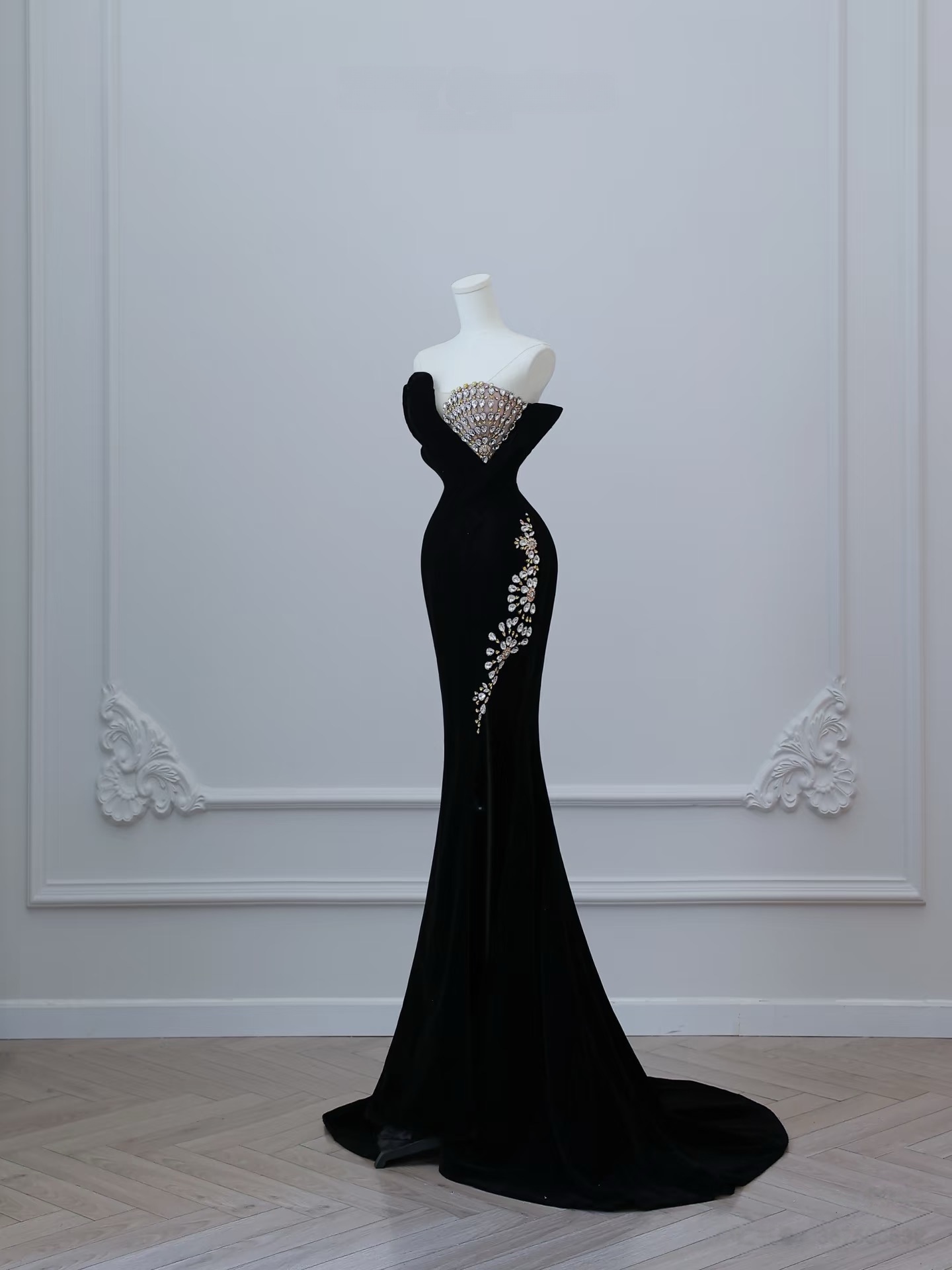 Sexy Black Strpless Velvet Rhinestones Mermaid Floor Length Prom Dress