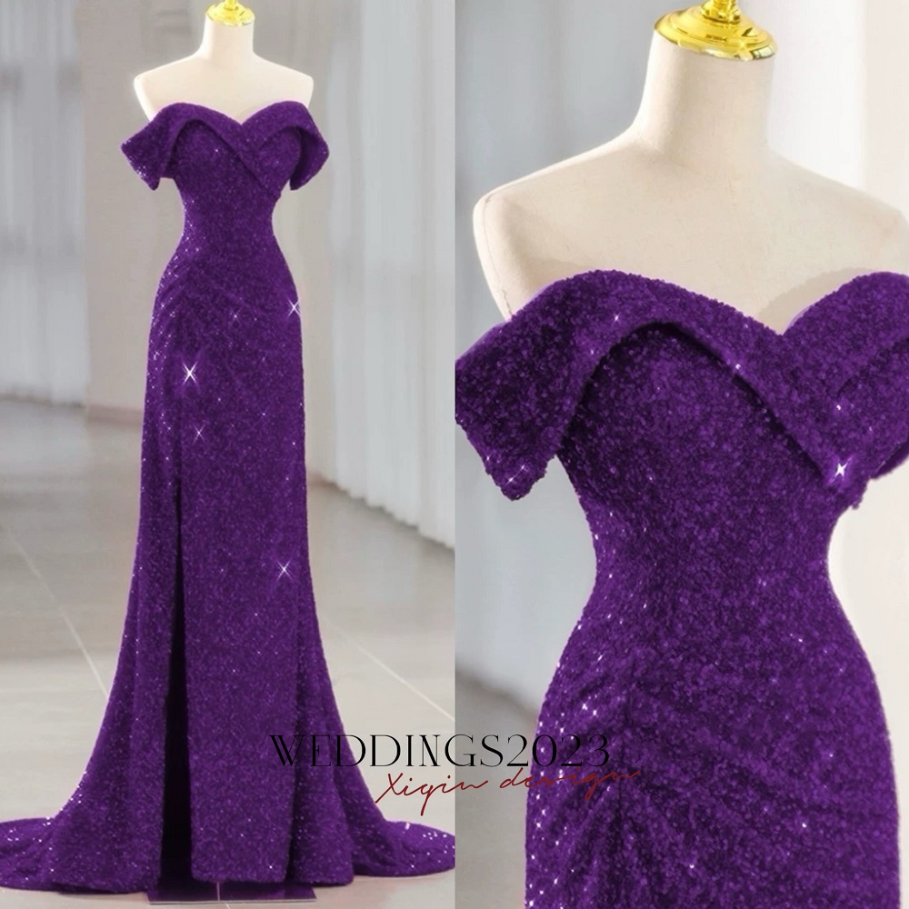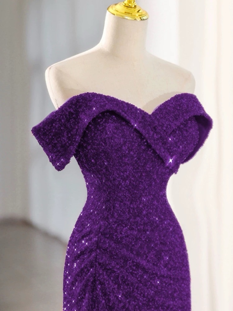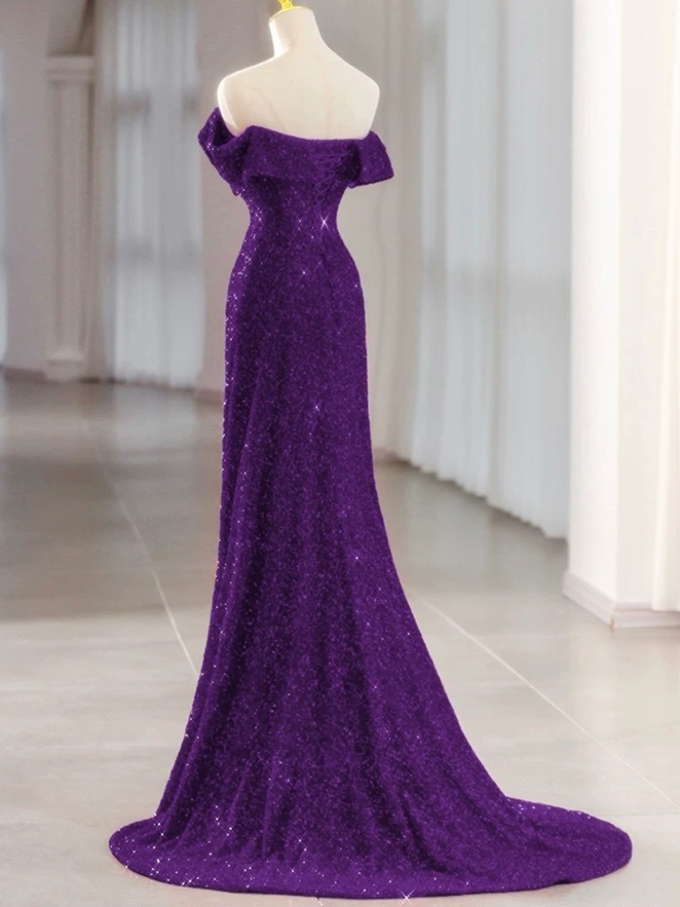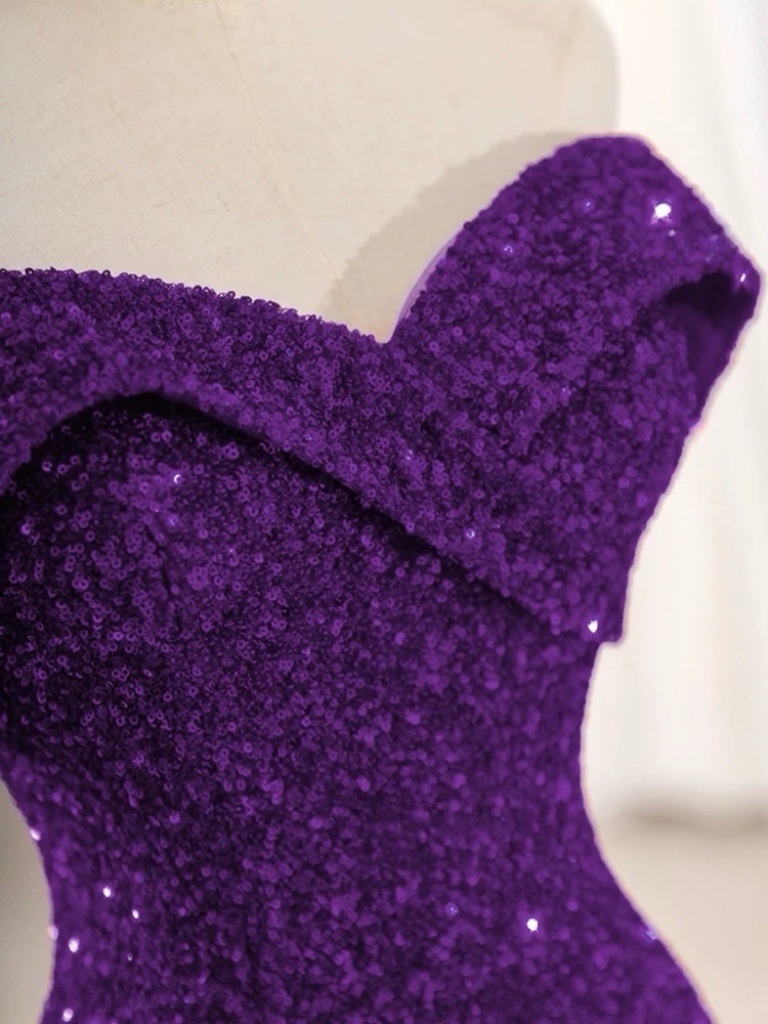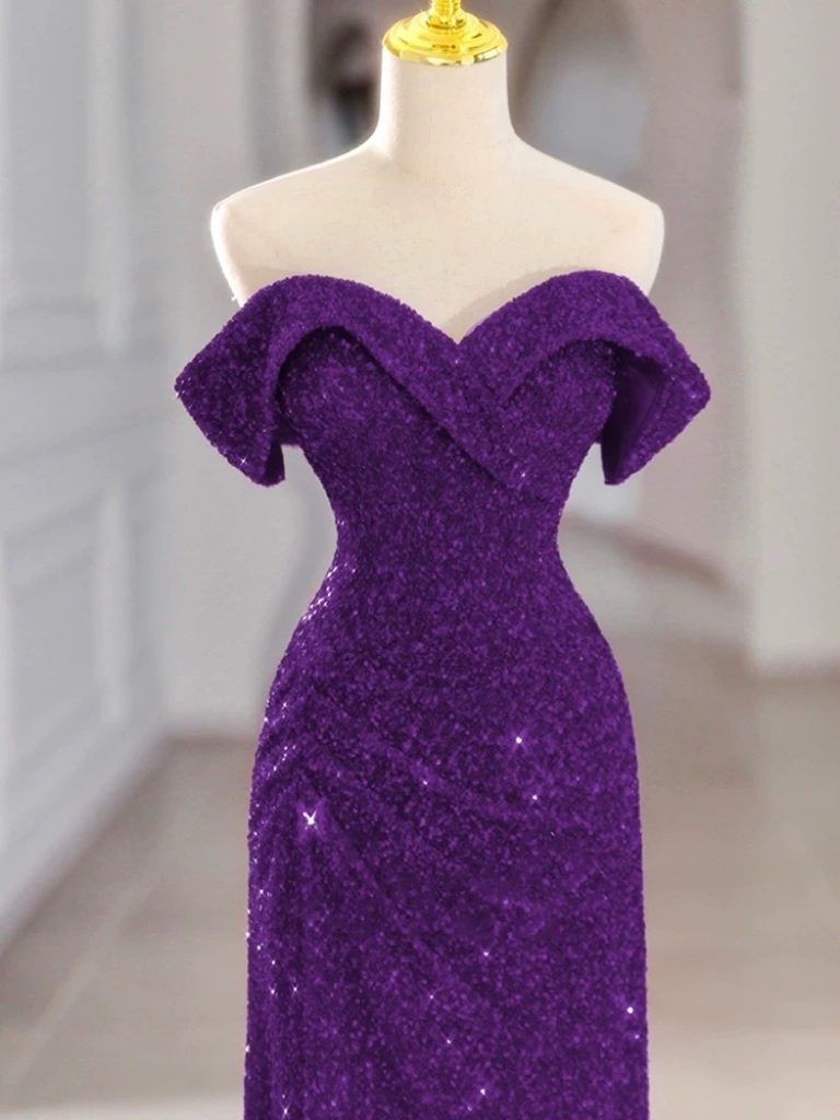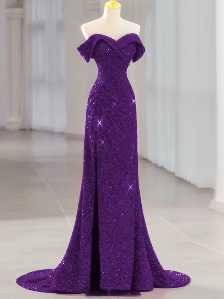 Lovely Sweethear Neck Strapless Sequins Purple Slit Prom Dress