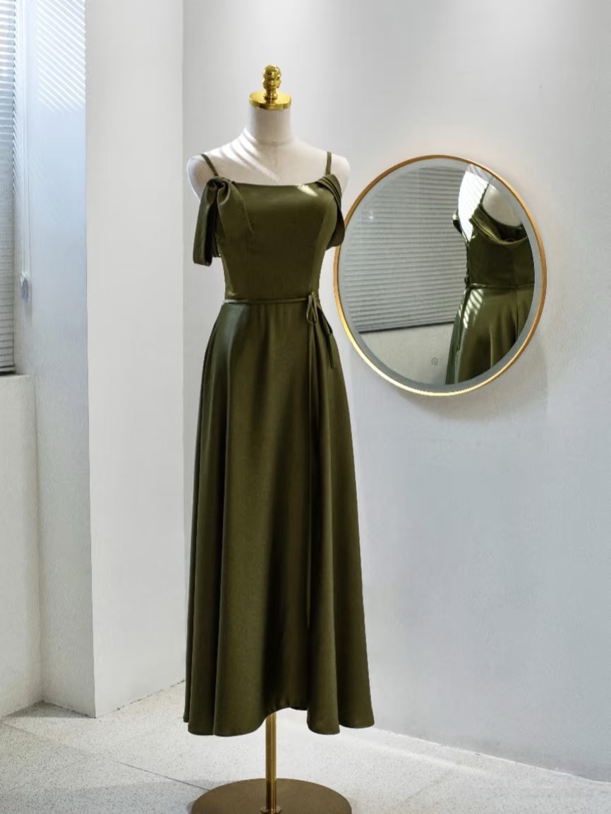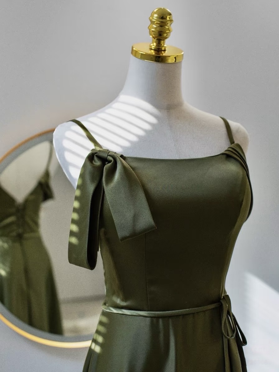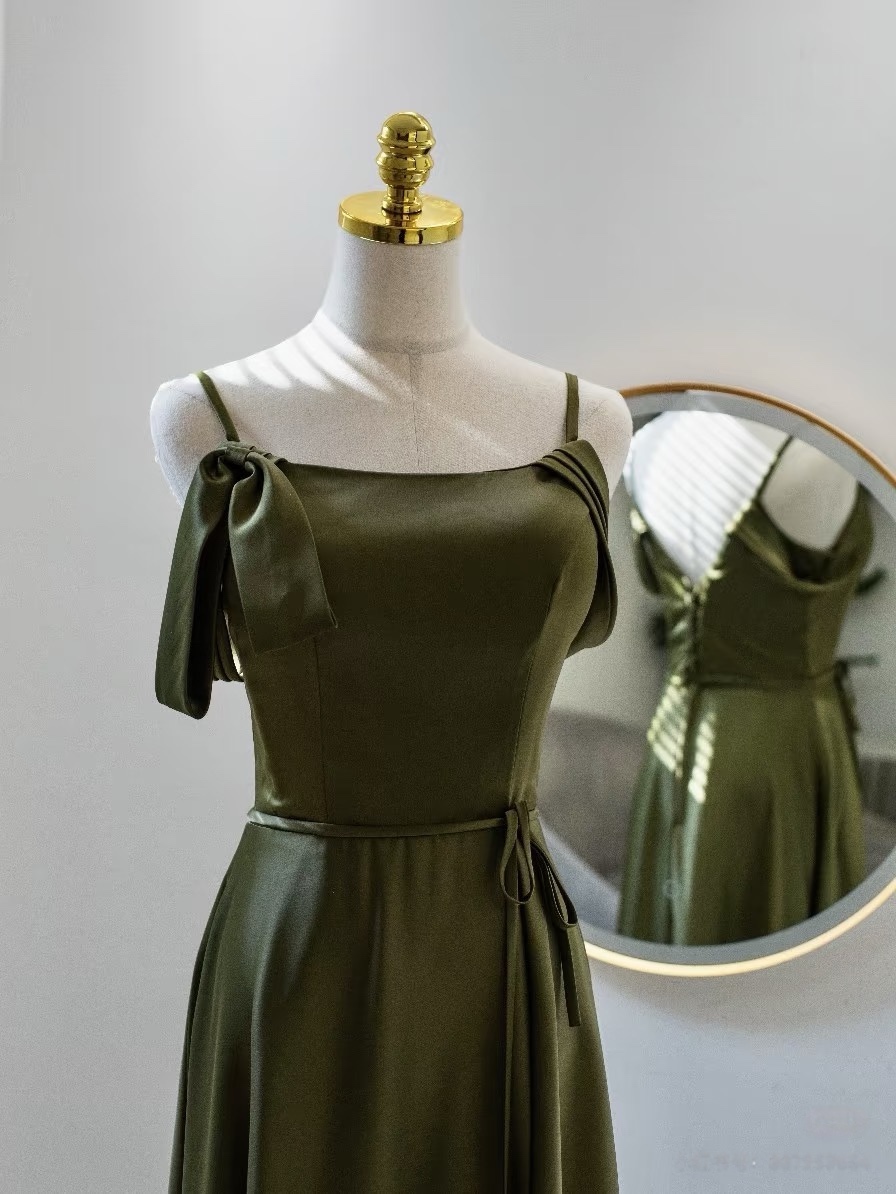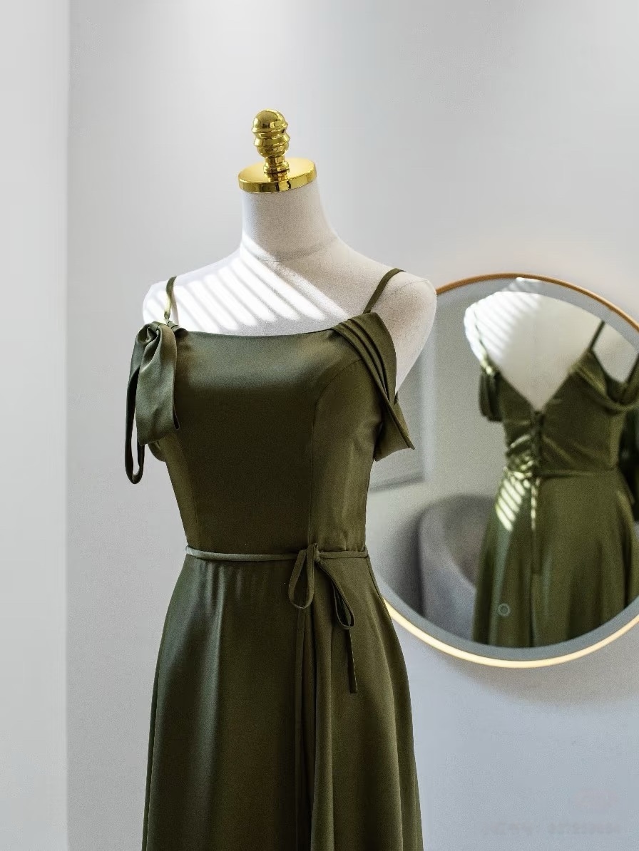 Dark Green Spaghetti straps Sheath with Belt Backless Prom Dress