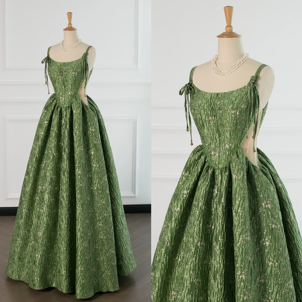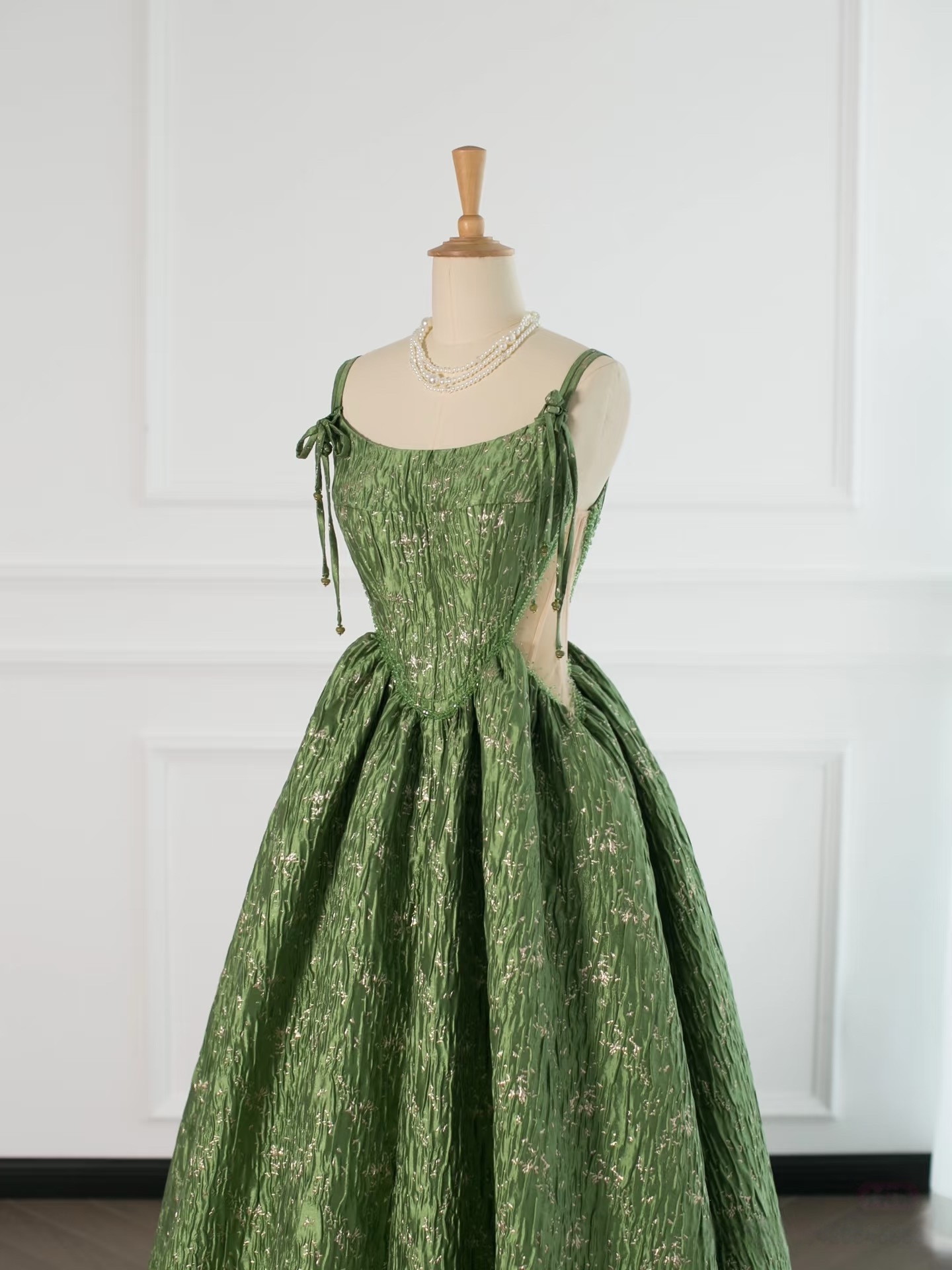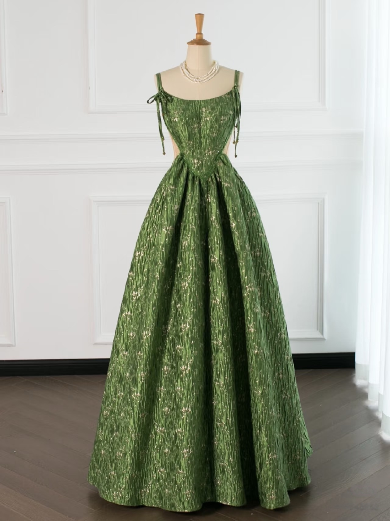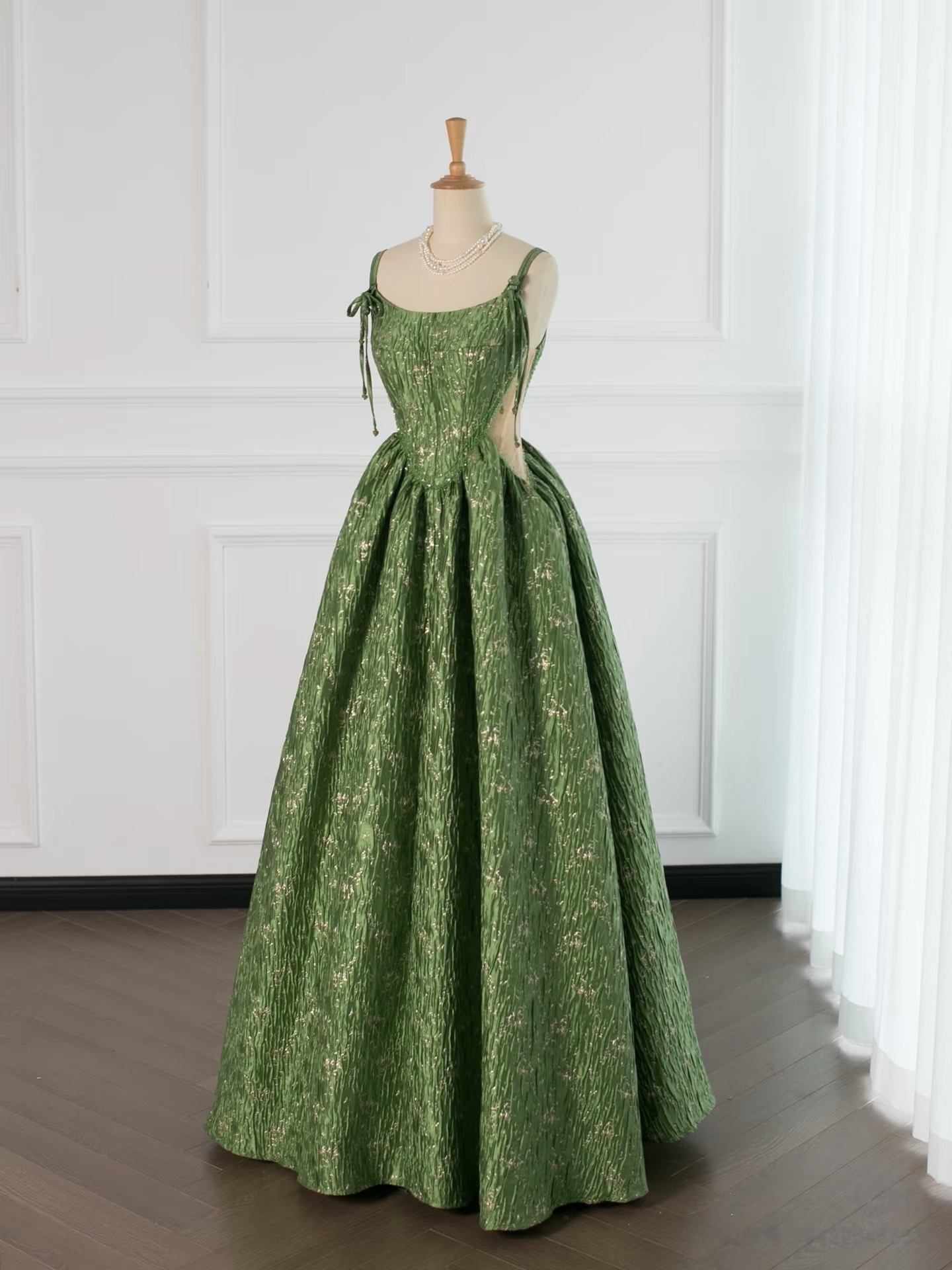 Beautiful Ball Gown Corset Back Moss Green Lace Prom Gown Long Prom Dresses, Green Floral Evening Dress