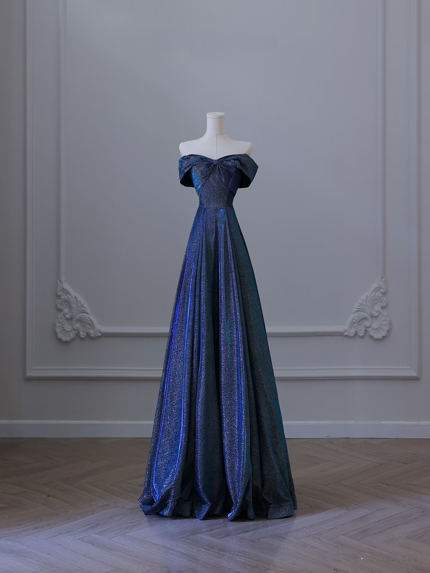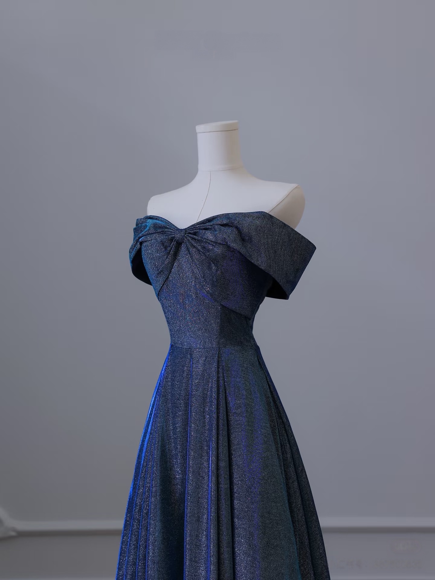 Navy Blue Strapless Sweetheart Neck Off the Shoulder Glitter A Line Long Prom Party Dress