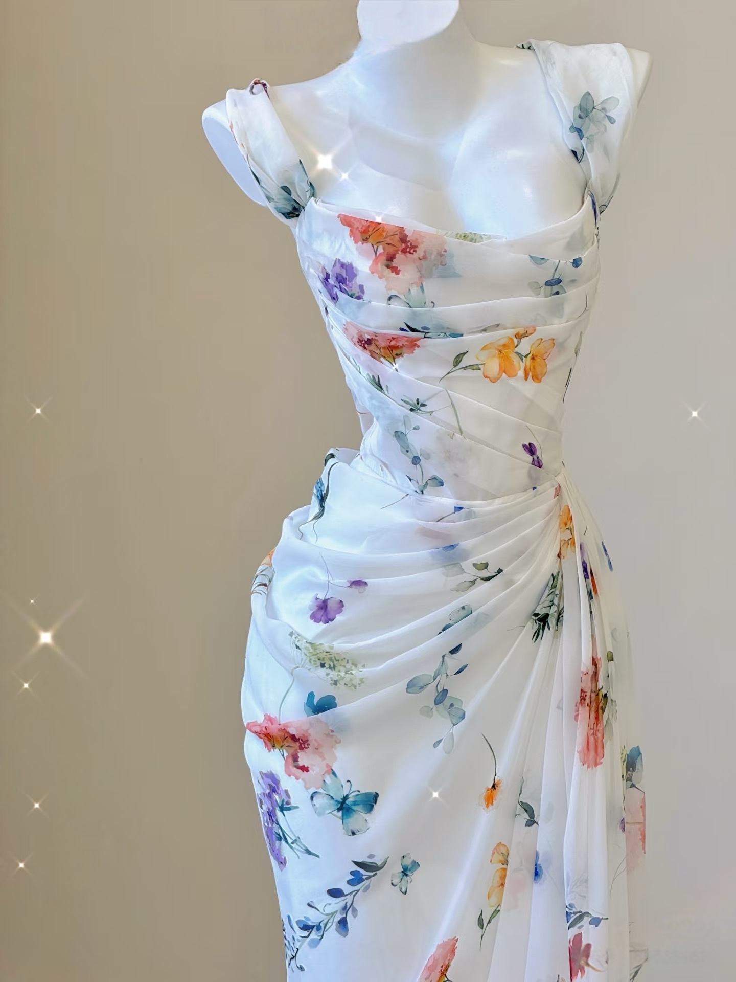 Sexy Mermaid Straps Chiffon Floral Evening Gowns Long Prom Dresses
