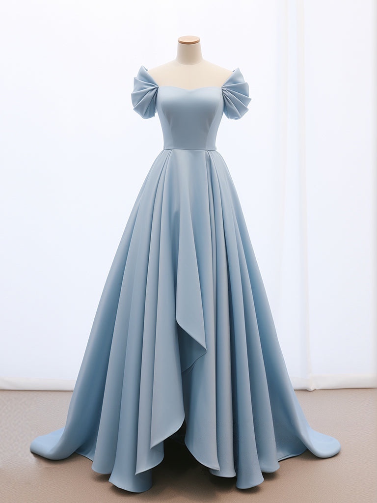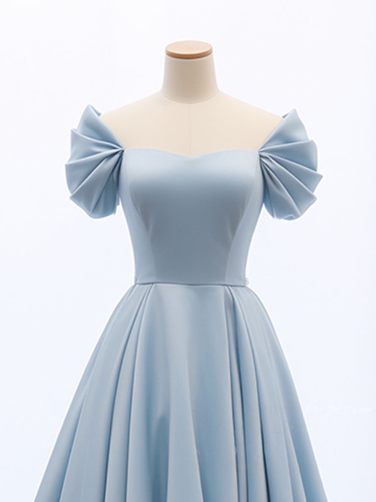 A-Line Sweetheart Neck Satin Blue Long Prom Dress, Blue Long Formal Dress