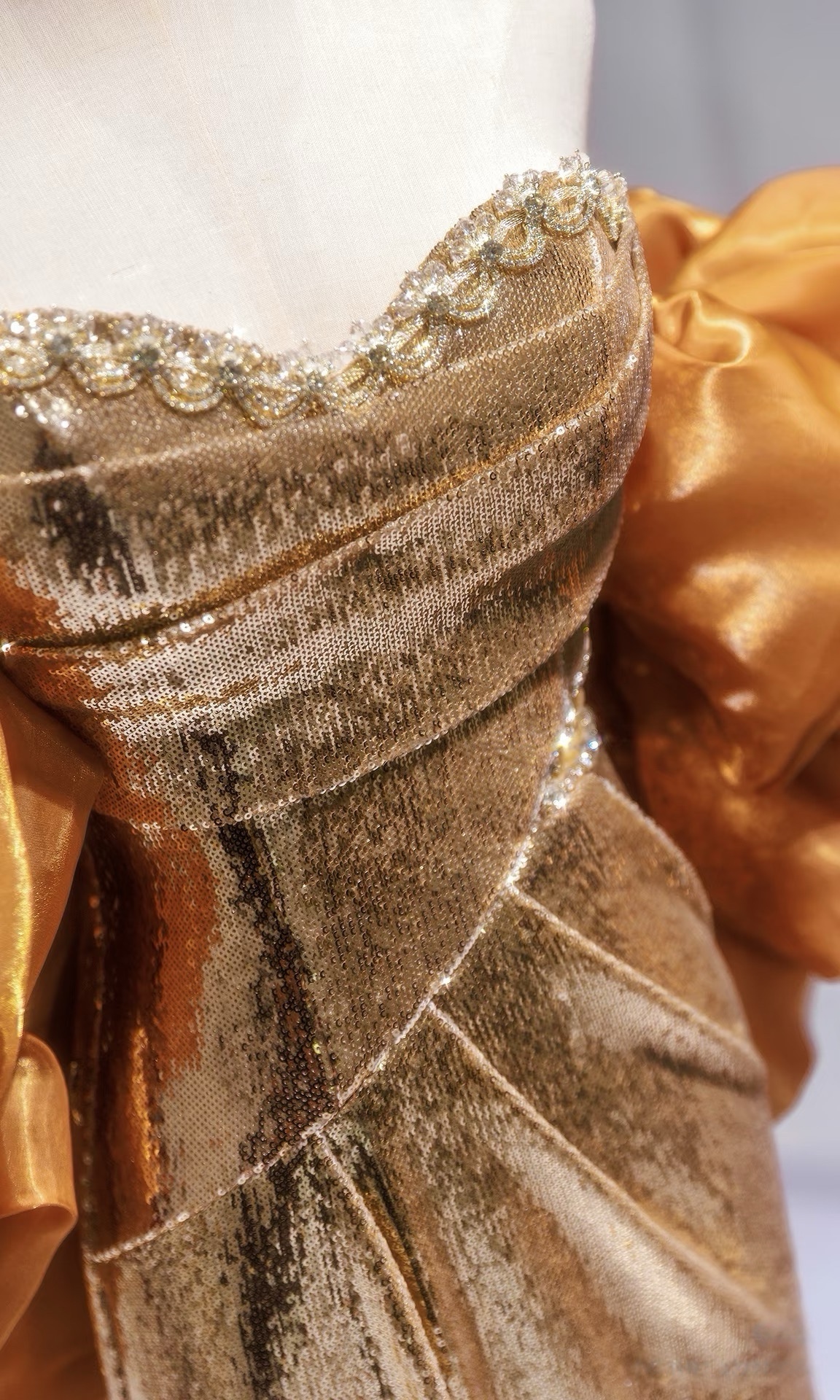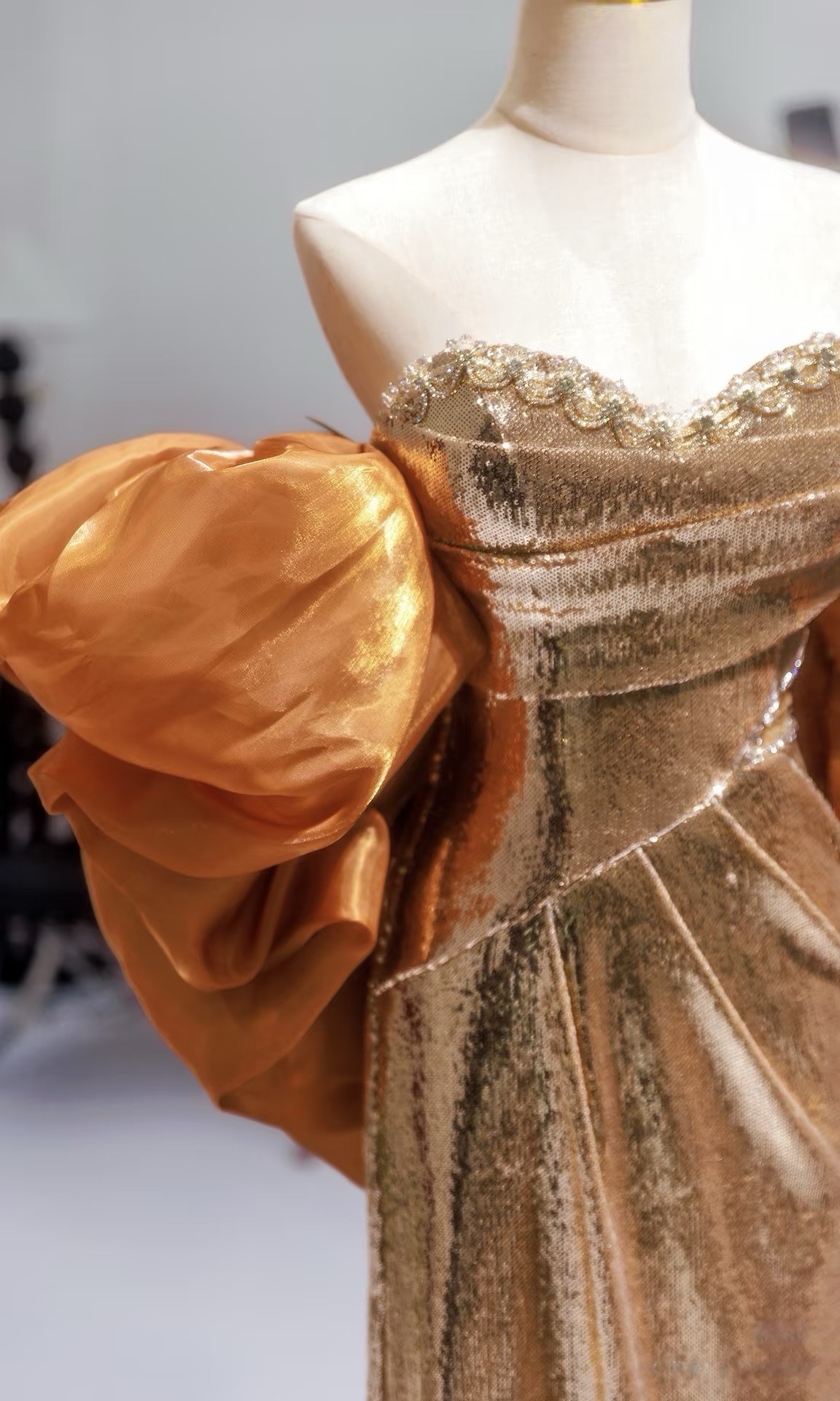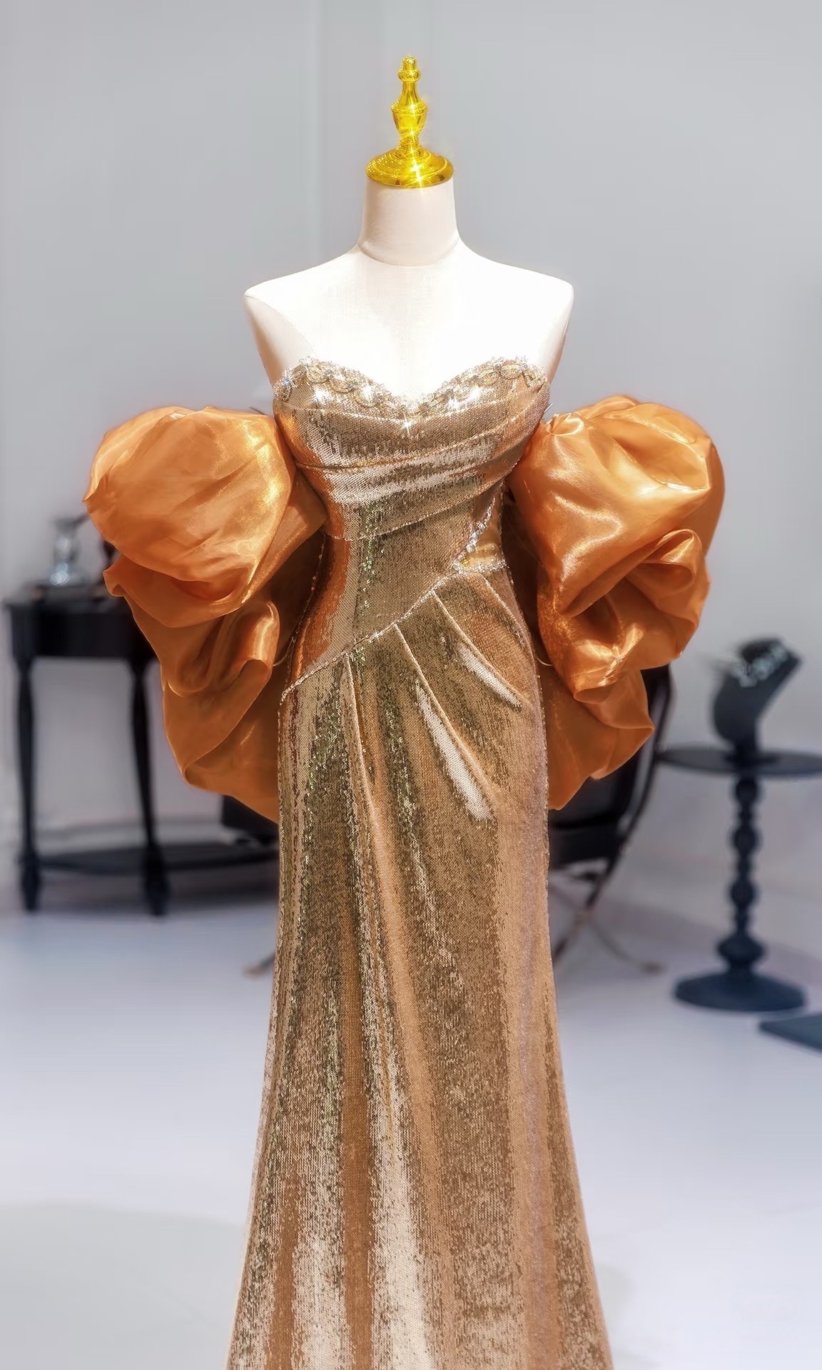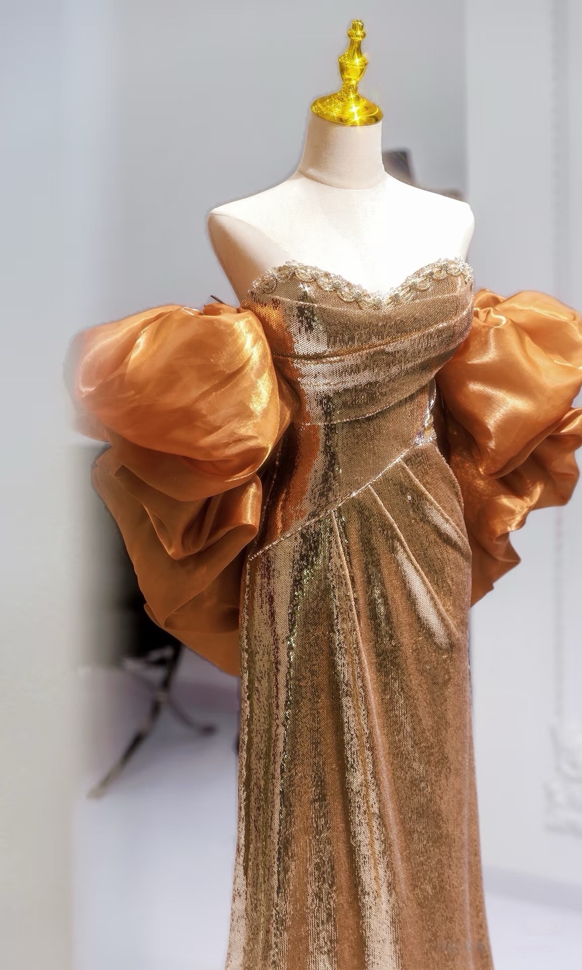 Gold Pretty Sequin Dress - Mermaid Dress Evening Gown - Strapless Sequins Evening Gown with Convertible Sleeves Plus Size